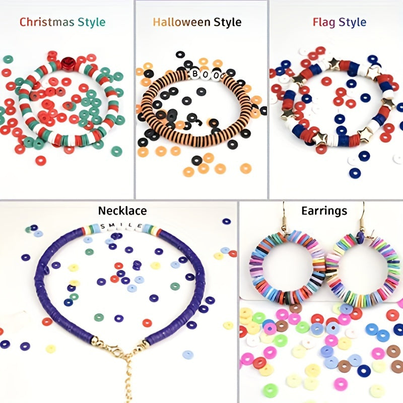 Create your own stylish bracelets with this kit that includes 7000pcs flat round polymer clay beads in 24 vibrant colors. Perfect for DIY crafts and jewelry making.