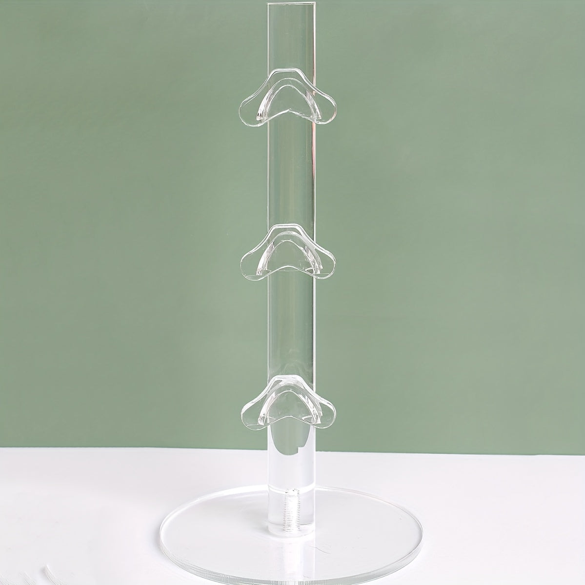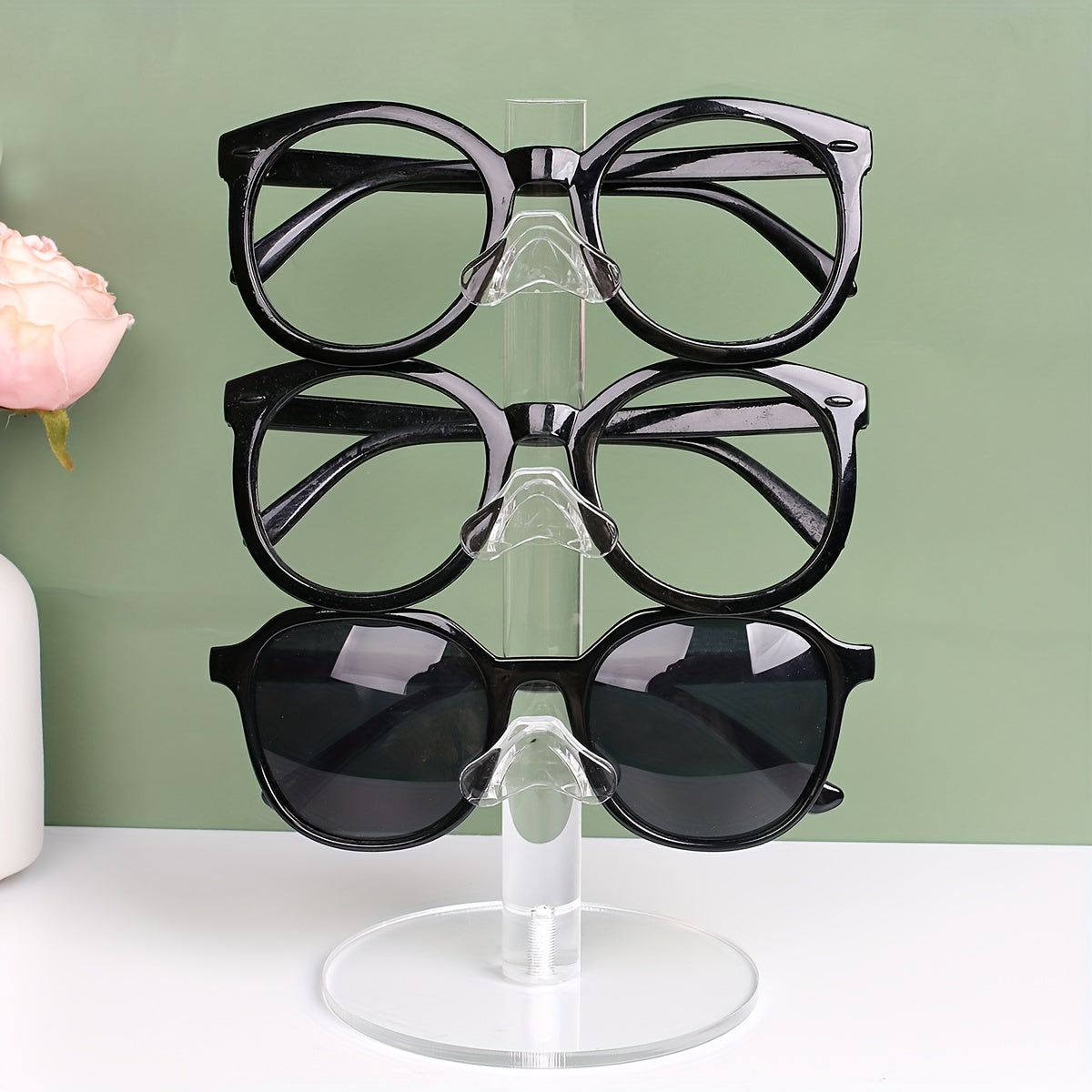 Organize and showcase your eyeglasses with this clear plexiglass display stand. Perfect for storing and displaying glasses frames in a stylish way.