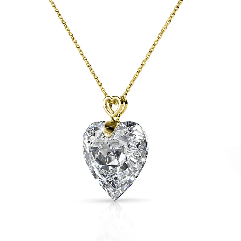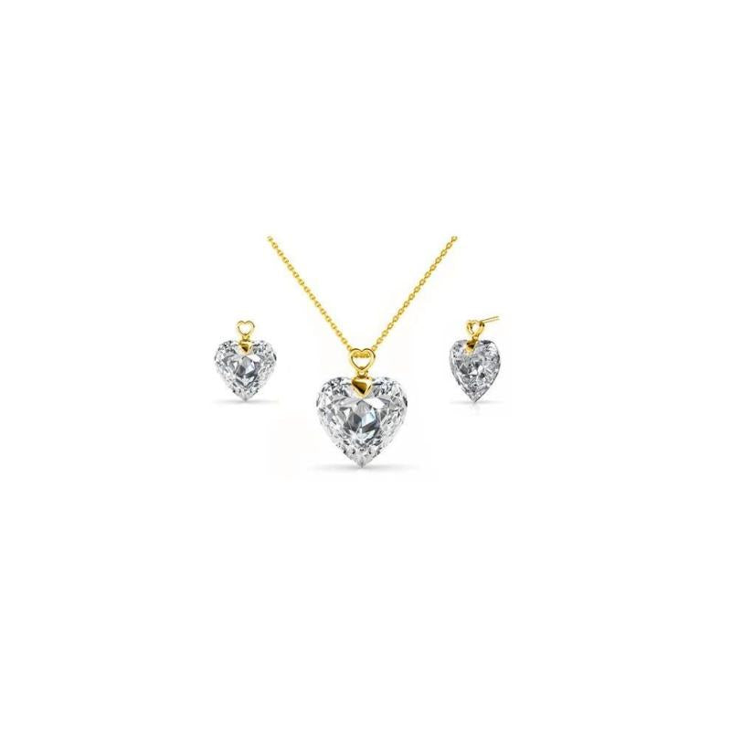 Elegant and timeless, this jewelry set features a golden chain with a heart-shaped crystal pendant. Complete your look with the matching earrings for a touch of sophistication.