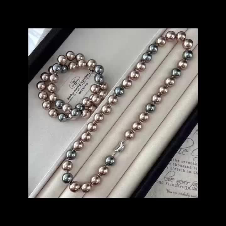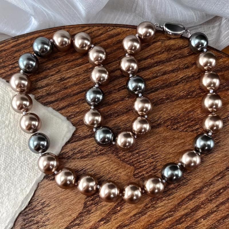 This large bead freshwater pearl necklace features natural golden coffee pearls. It is adorned with celestial symbols, making it perfect for daily wear and gift occasions.