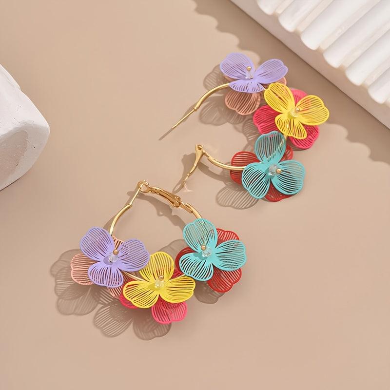 Unique and stylish iron-crafted earrings featuring vibrant 3D flower petals in a whimsical design. Perfect for adding a pop of color to your everyday or party outfits.