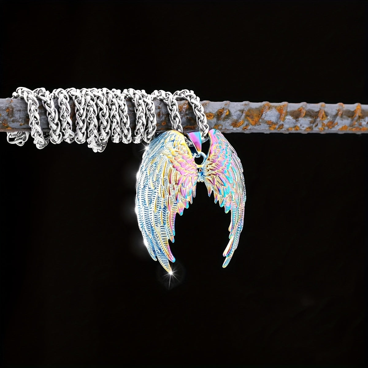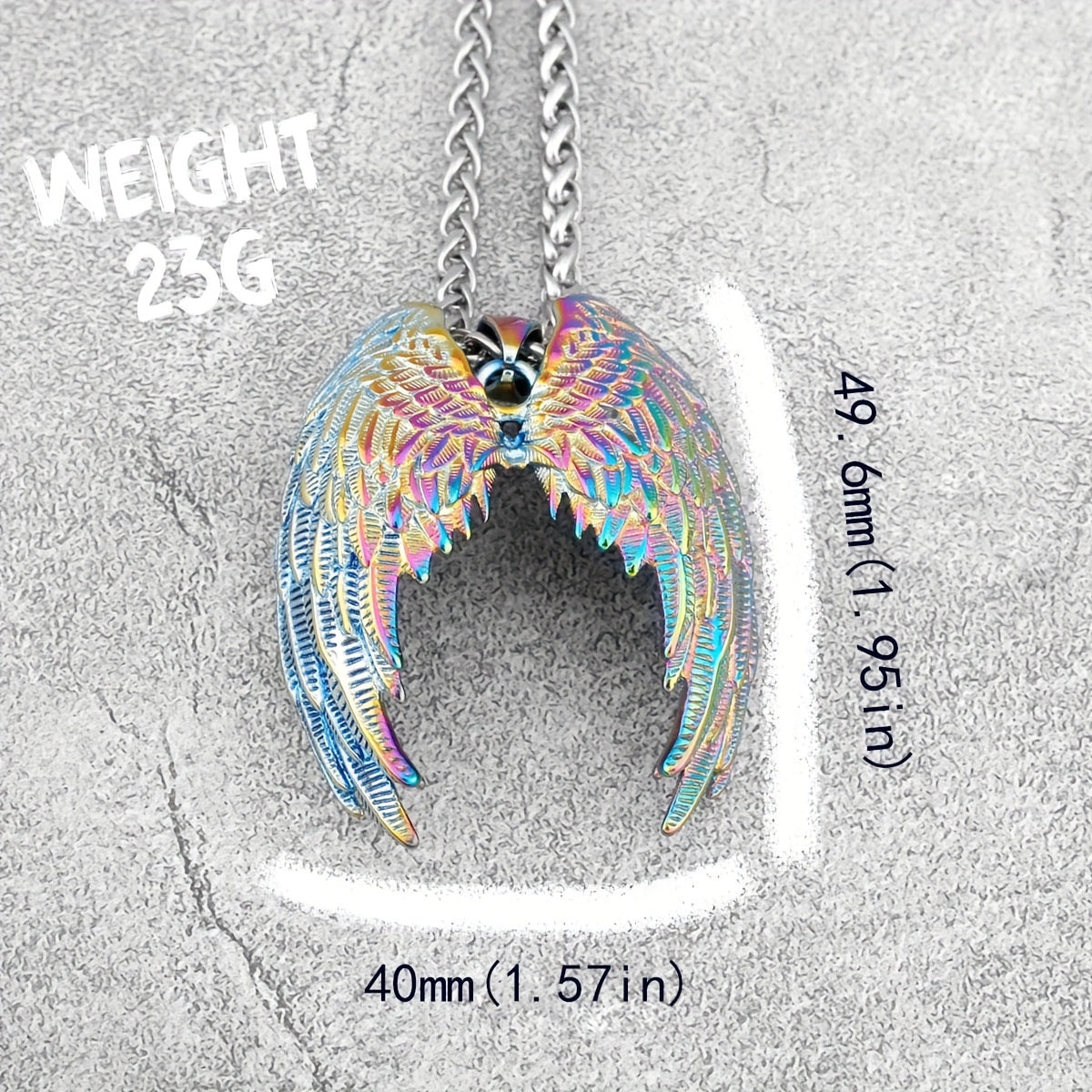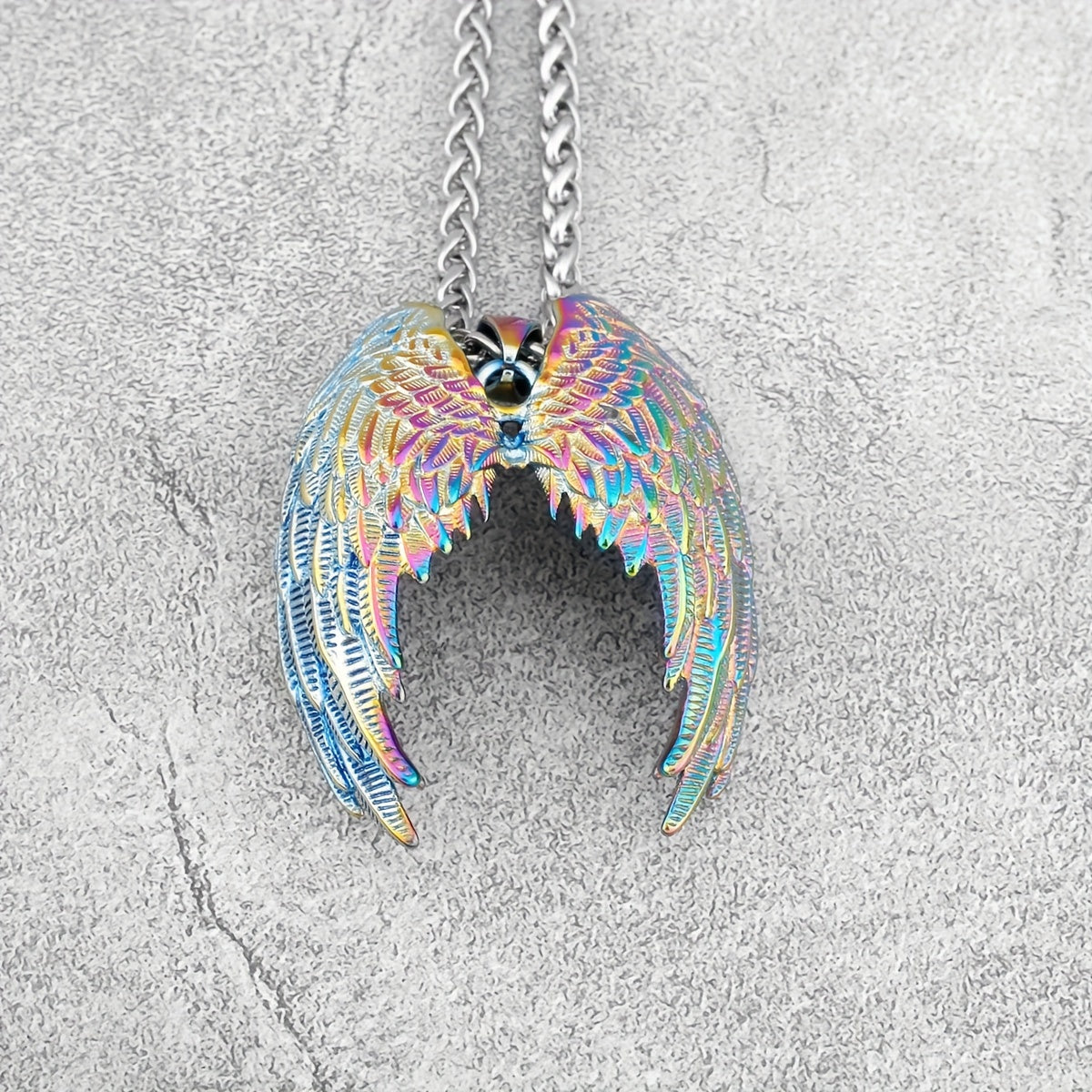 Unique Viking necklace designed with colorful angel wings and animal motifs, crafted from stainless steel. Perfect gift for men, couples, or women.