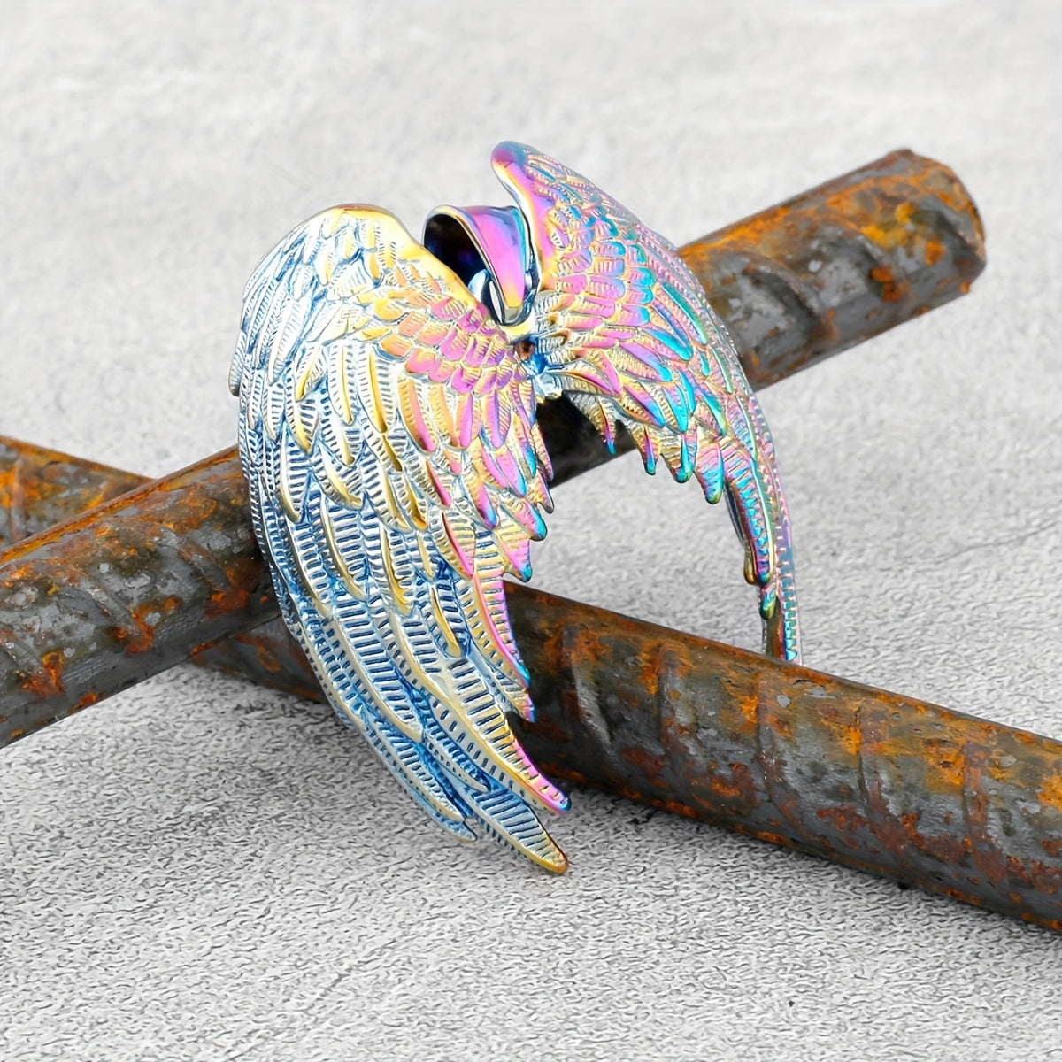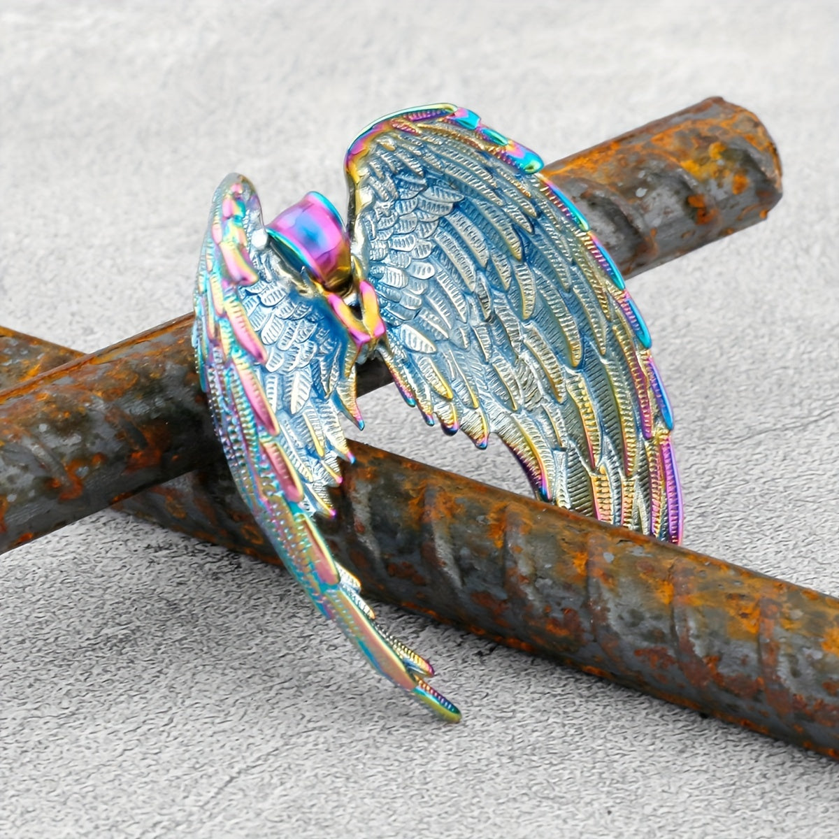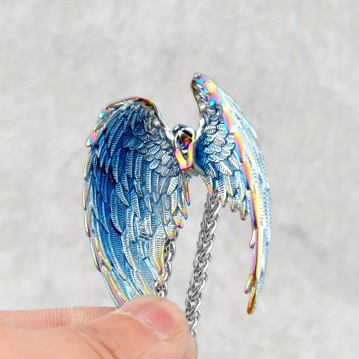 Unique Viking necklace designed with colorful angel wings and animal motifs, crafted from stainless steel. Perfect gift for men, couples, or women.
