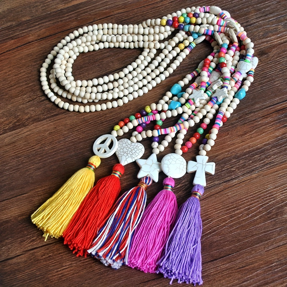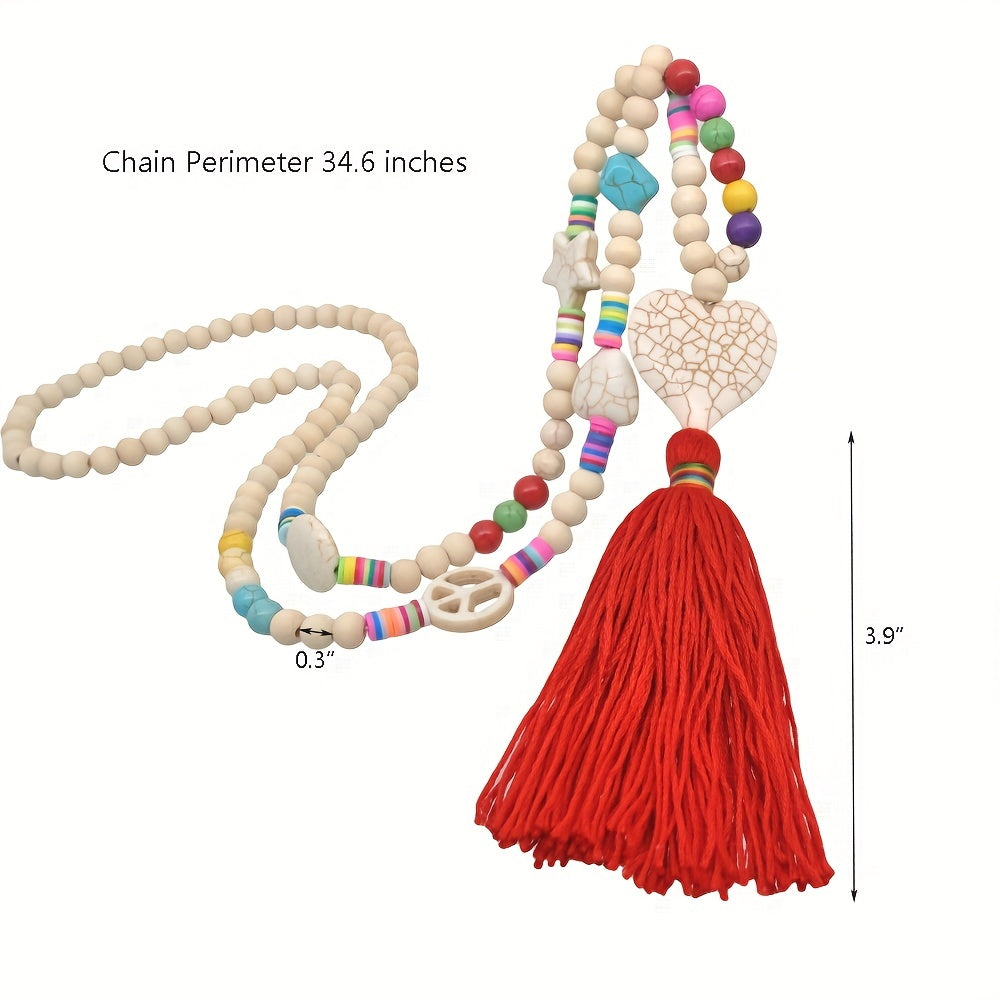 Colorful Beaded Tassel Long Necklace Stone Pendant Boho Summer Jewelry