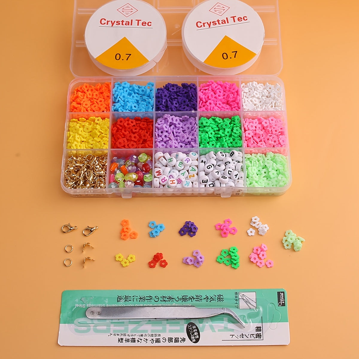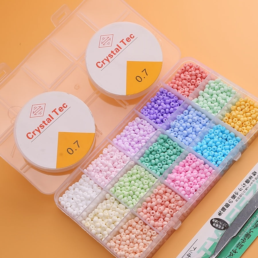 Get creative with this set that includes a box of colorful beads, two boxes of elastic threads, and a handy tweezers. Perfect for making jewelry or various craft projects.