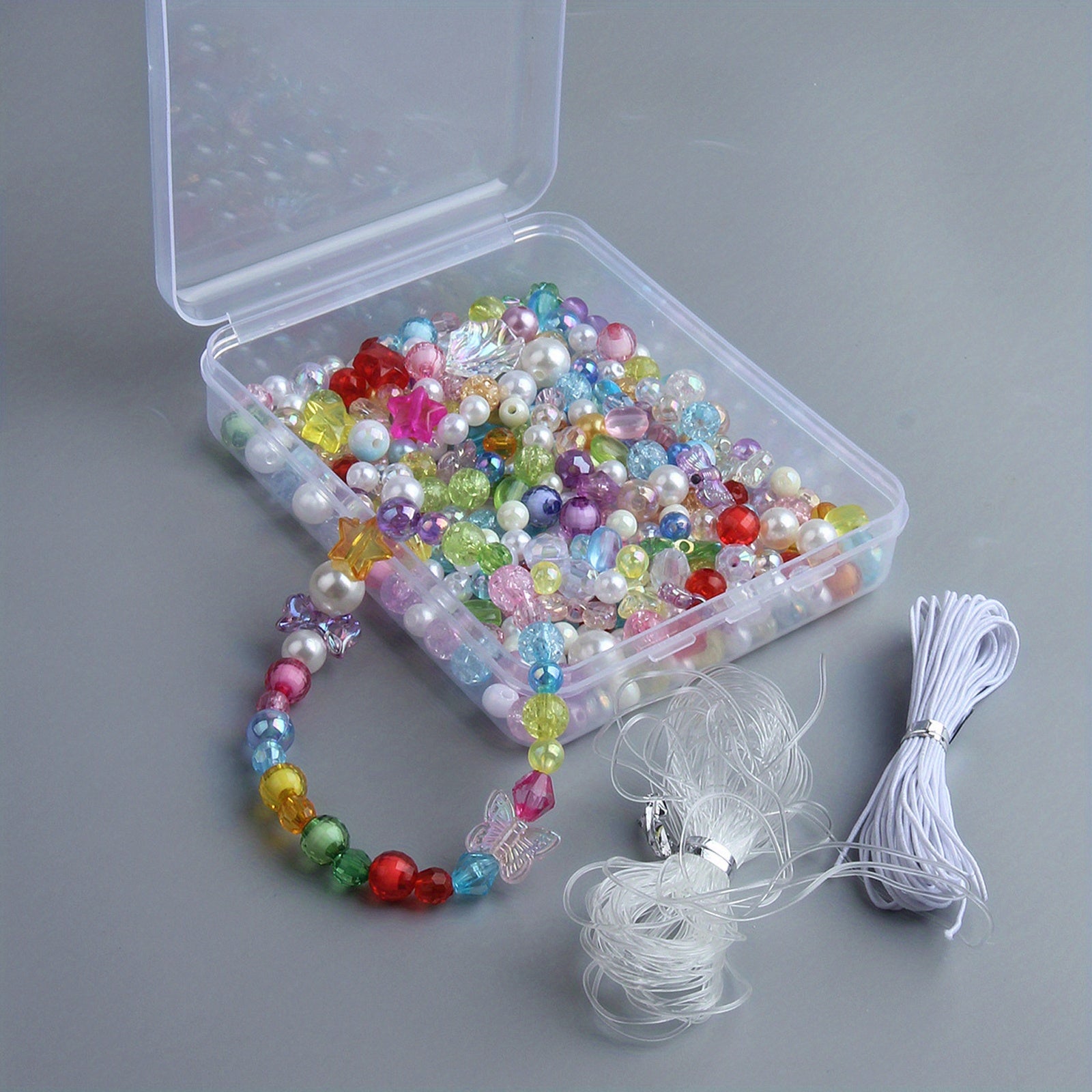 Get creative with this set of 350-420 colorful beads ideal for making necklaces, bracelets, earrings, and more. Includes elastic string for easy crafting.