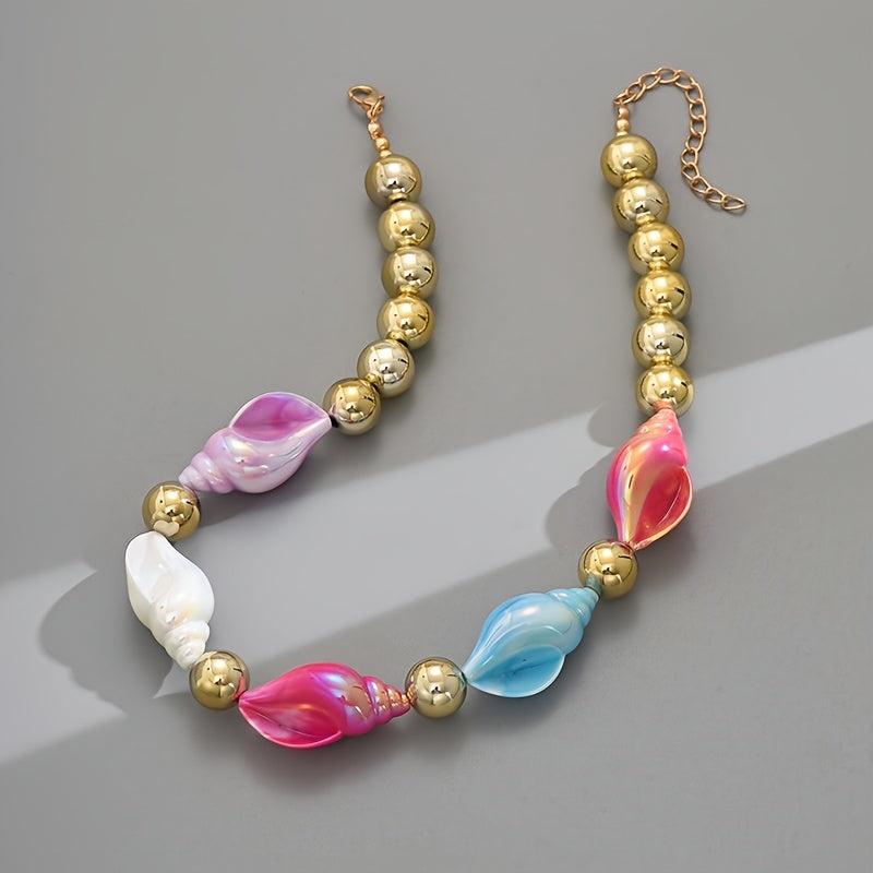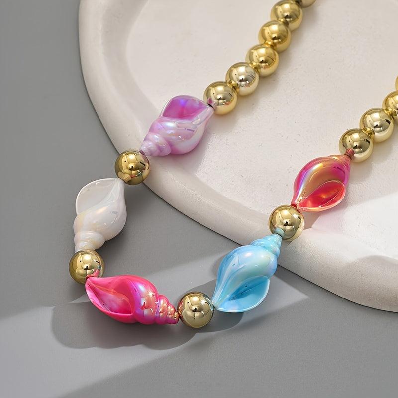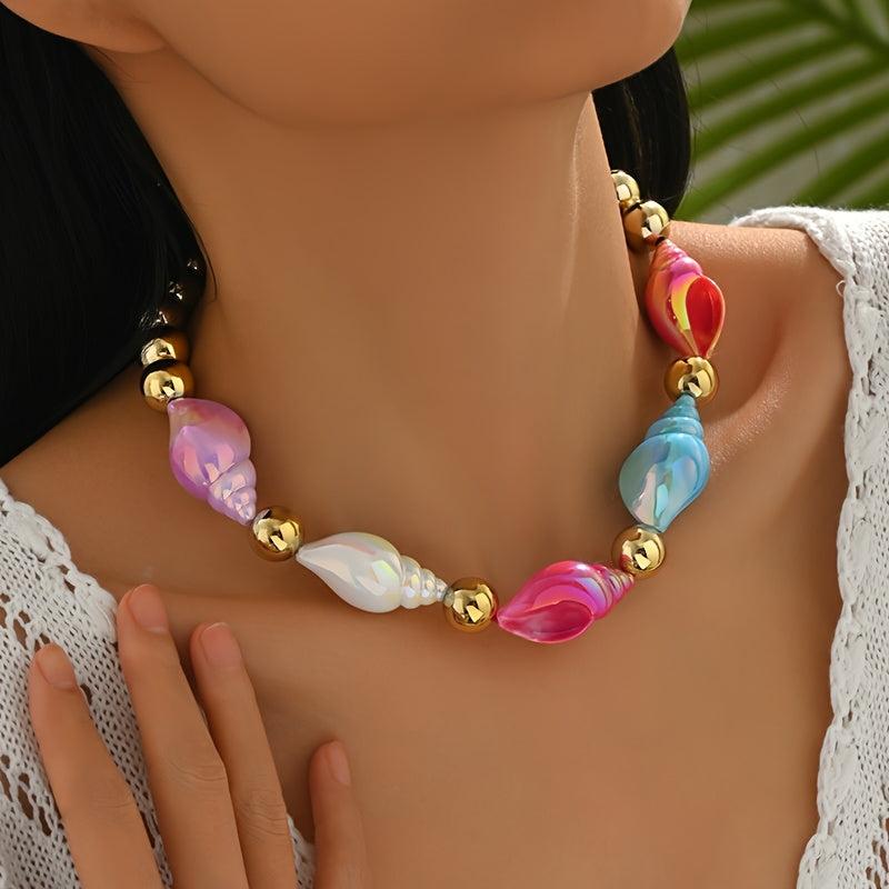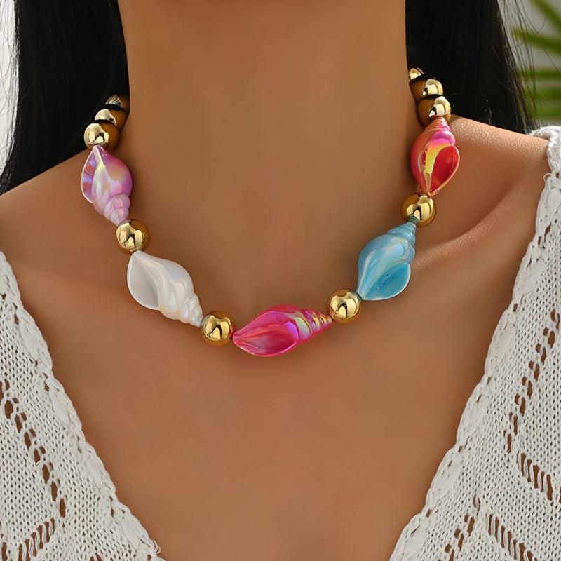 Add a playful touch to your outfit with this boho resin conch necklace. It's versatile for daily wear or parties, making it a perfect accessory for any occasion.
