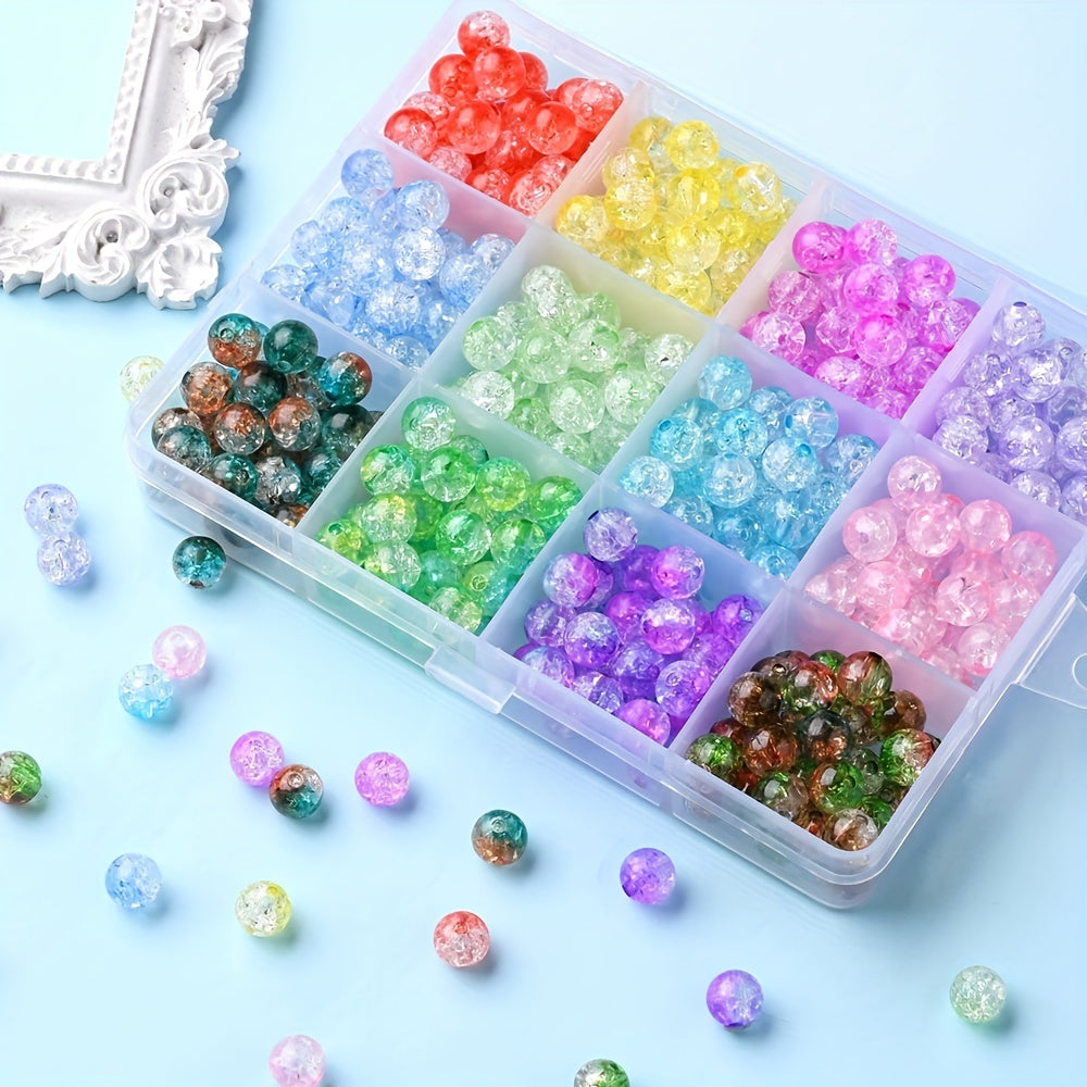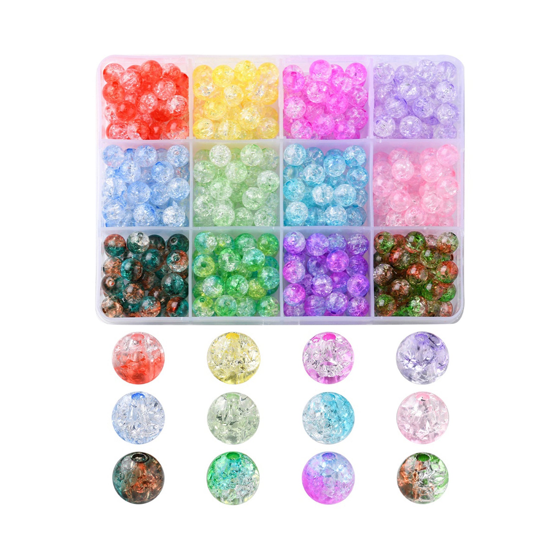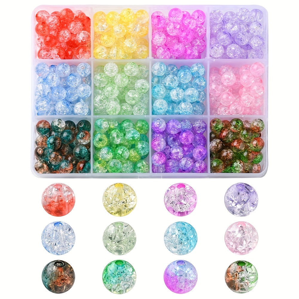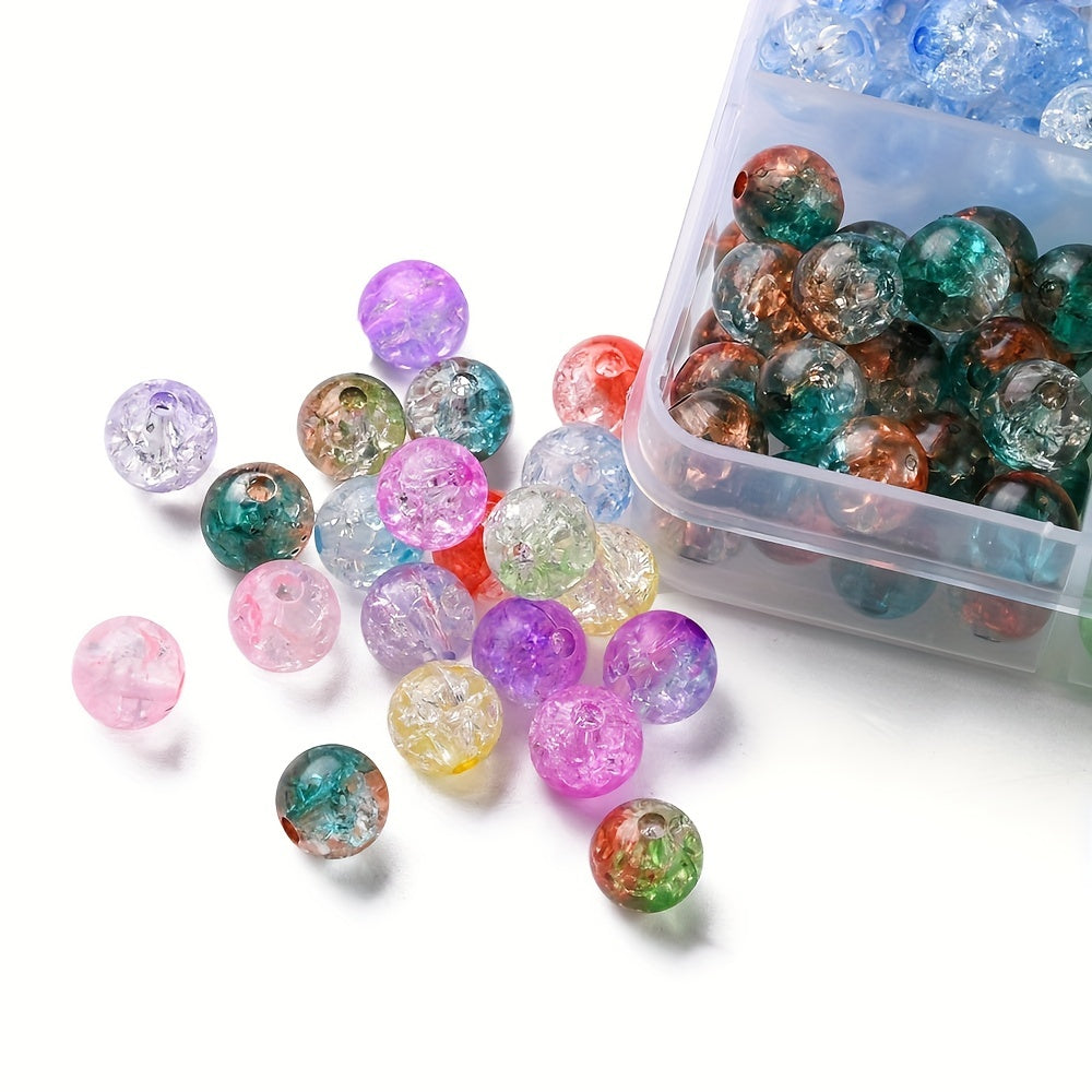 This set includes 8mm round acrylic beads in a variety of vibrant colors with a crackle glass pattern. Perfect for creating your own earrings, bracelets, necklaces, and other accessories.