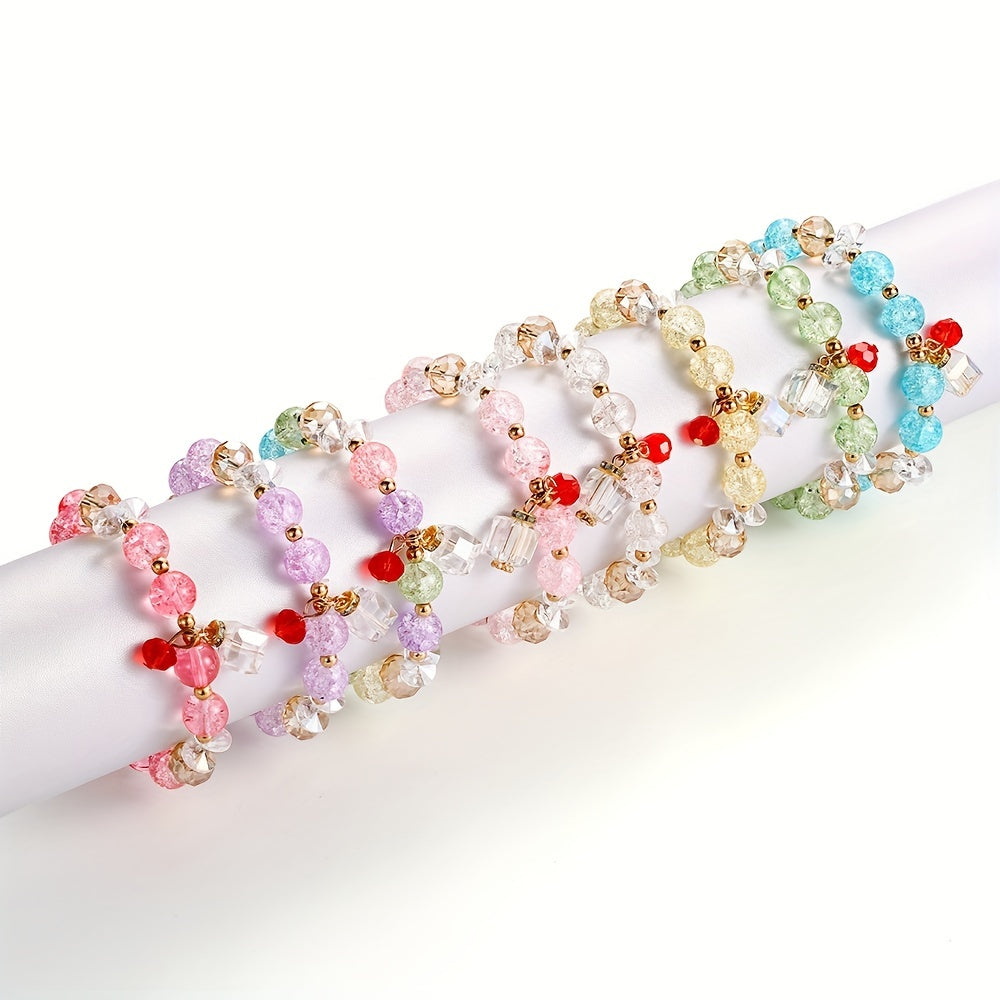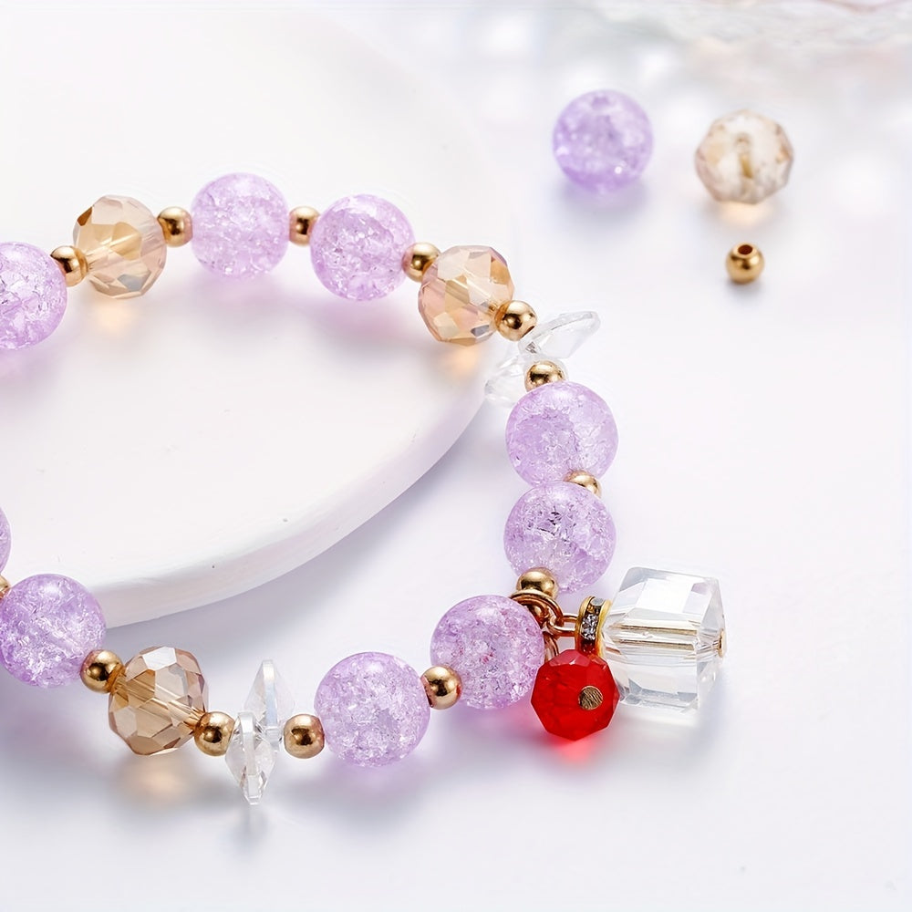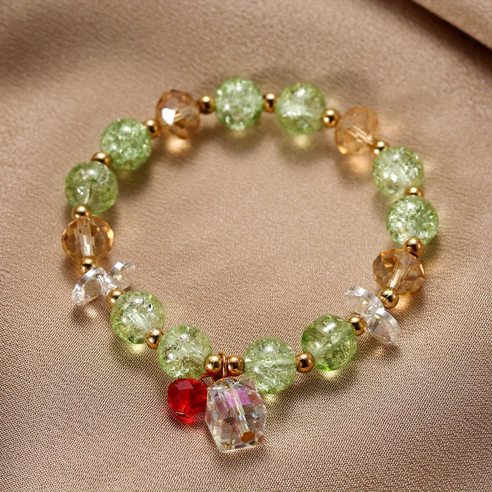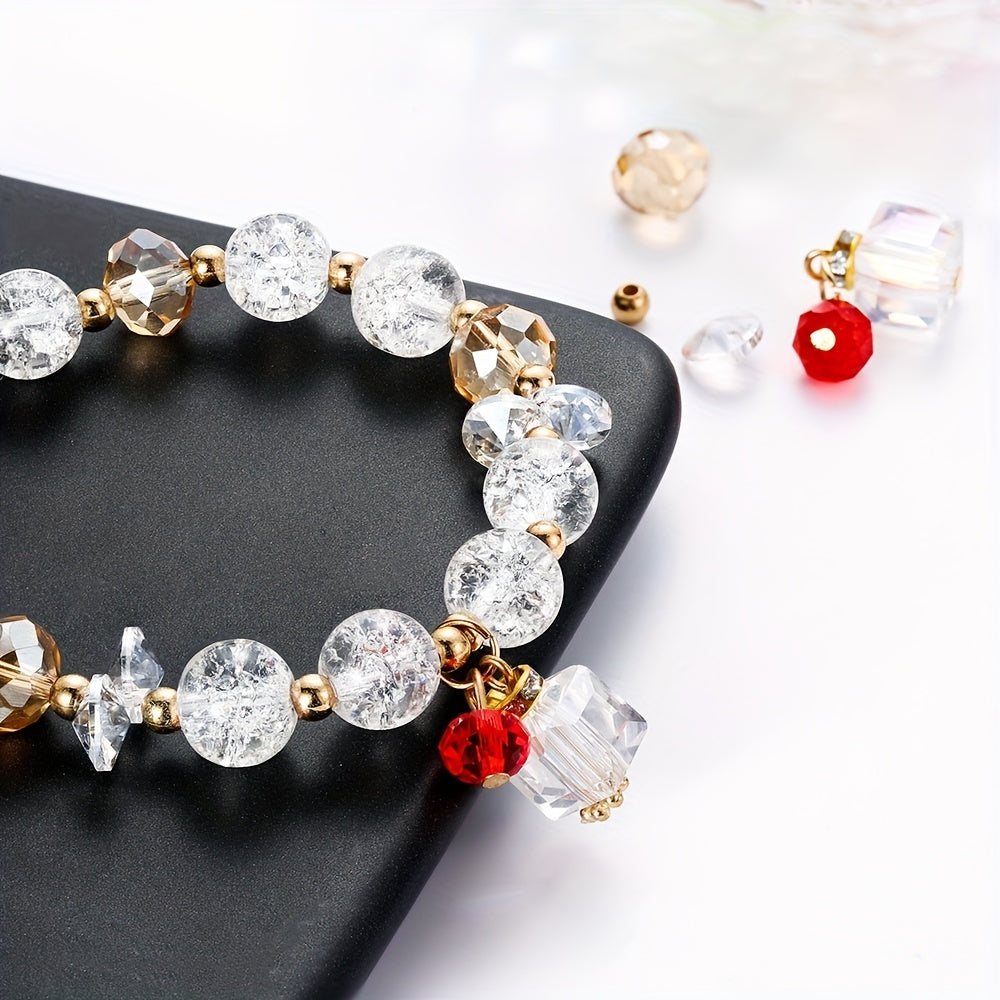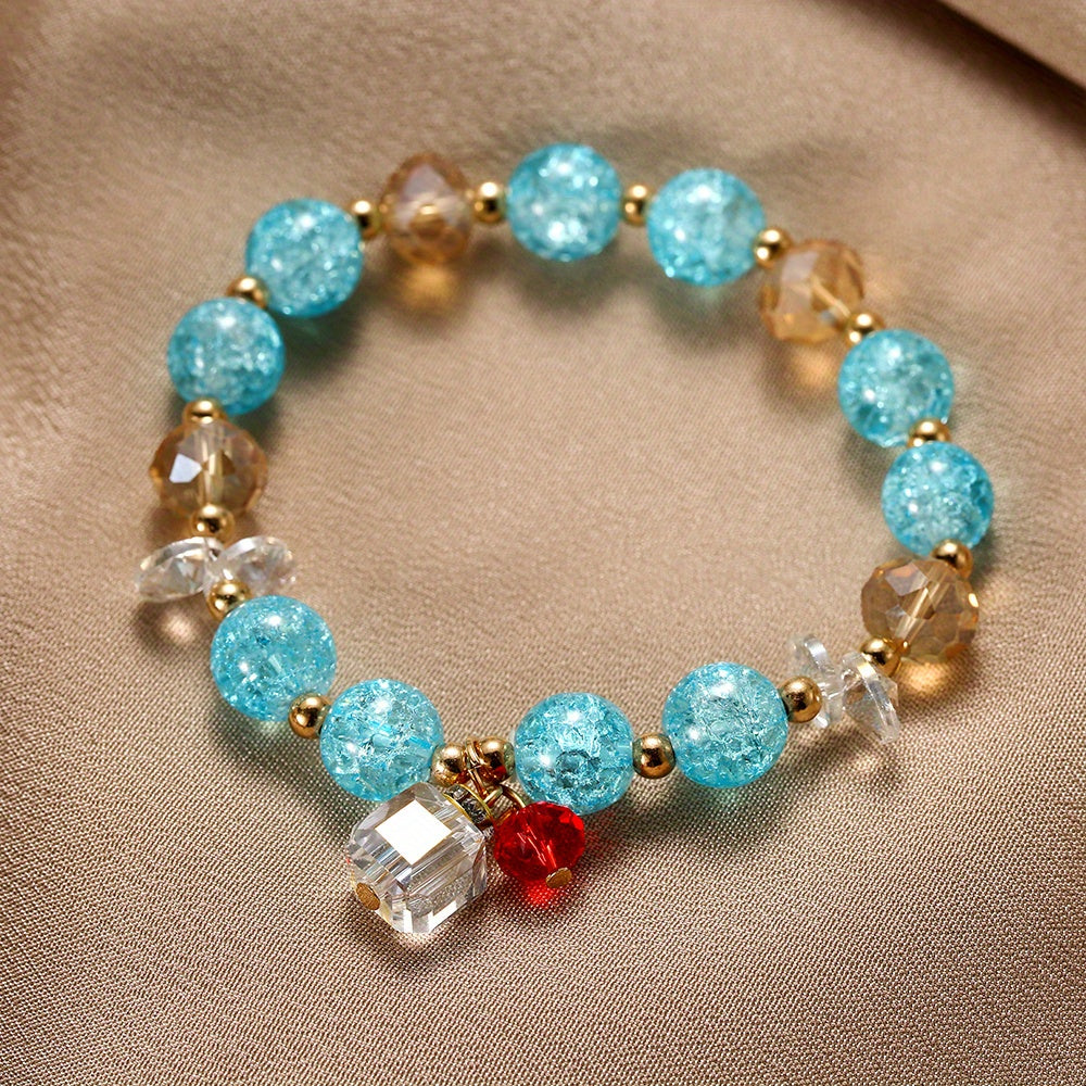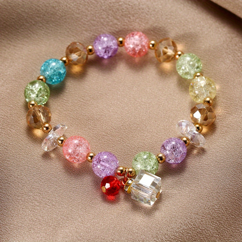 Add a pop of color to your outfit with this acrylic crackle glass bracelet. The round beads offer a playful and vibrant look that will make you stand out.