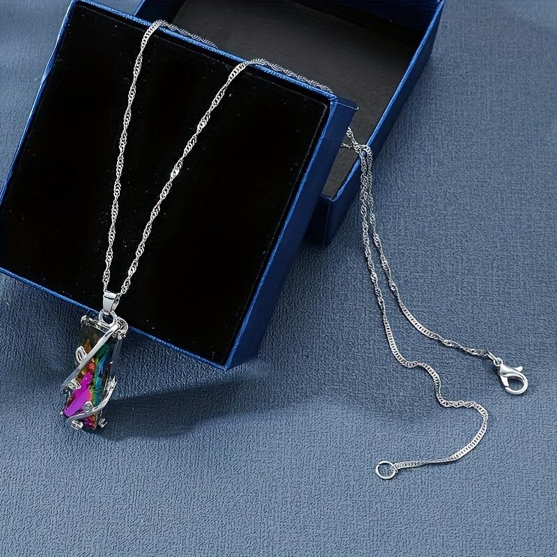 Colorful Crystal Branch Pendant Necklace Japanese Style Rhinestone Mosaic Copper