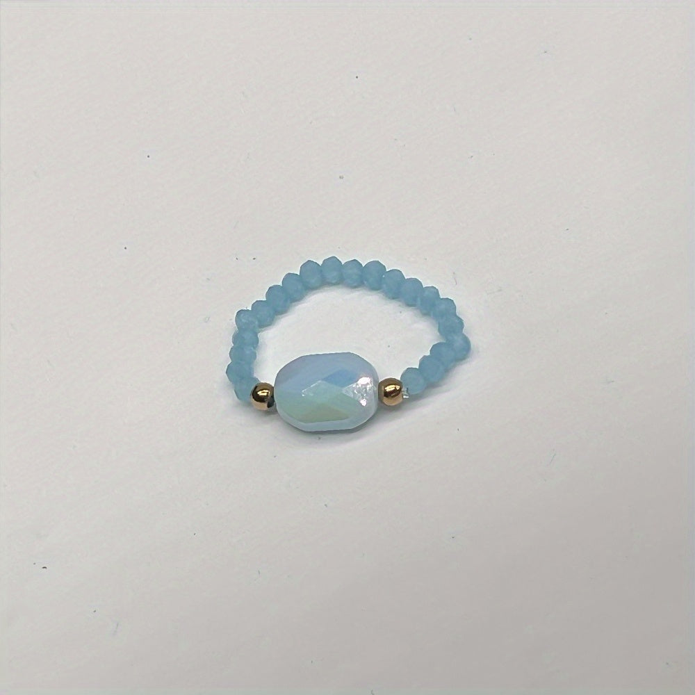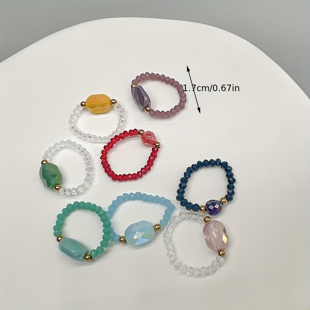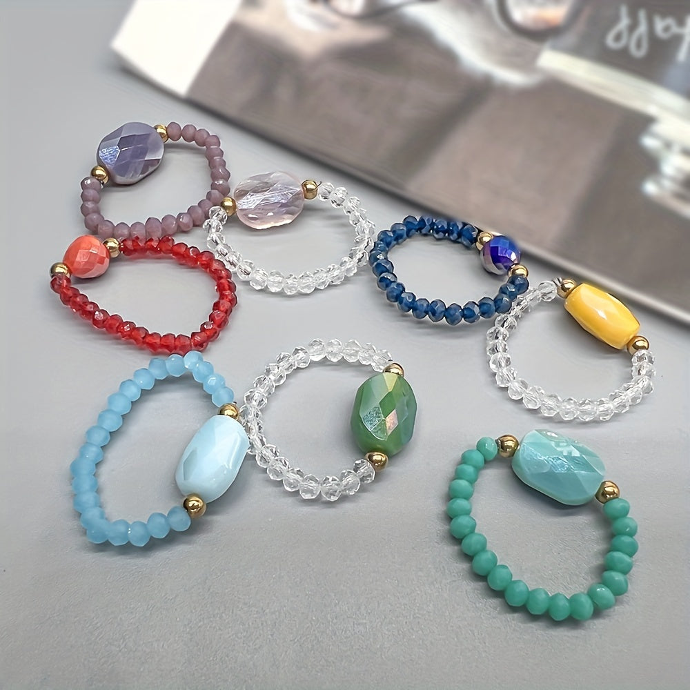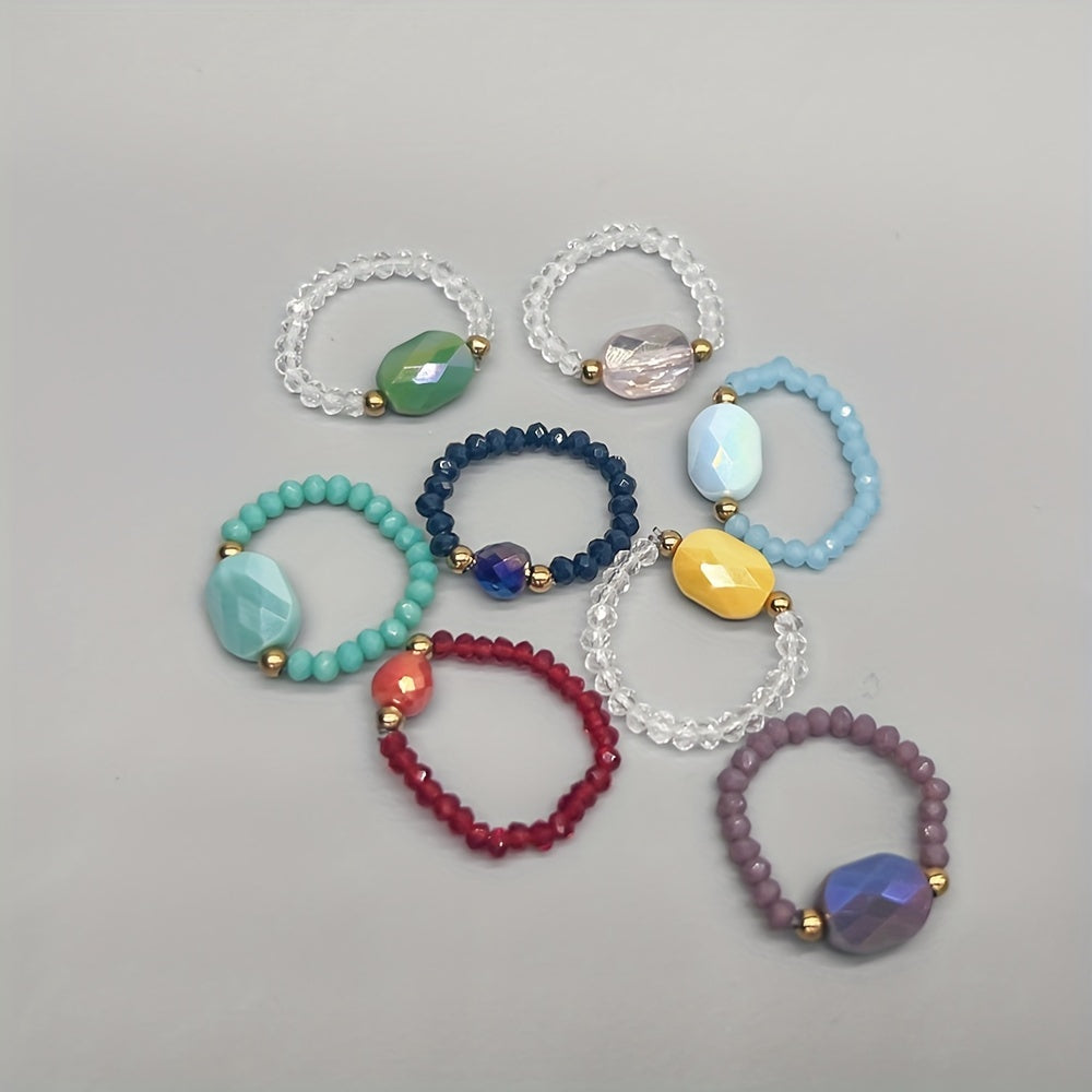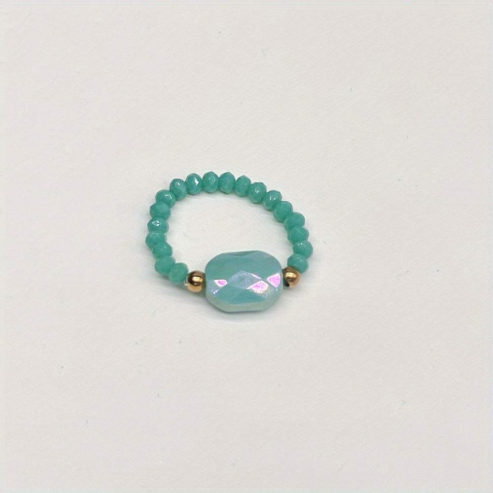 This stunning ring features square crystal glass beads in vibrant colors. It is electroplated for a shiny finish, making it a beautiful finger jewelry accessory for women.