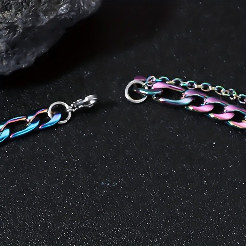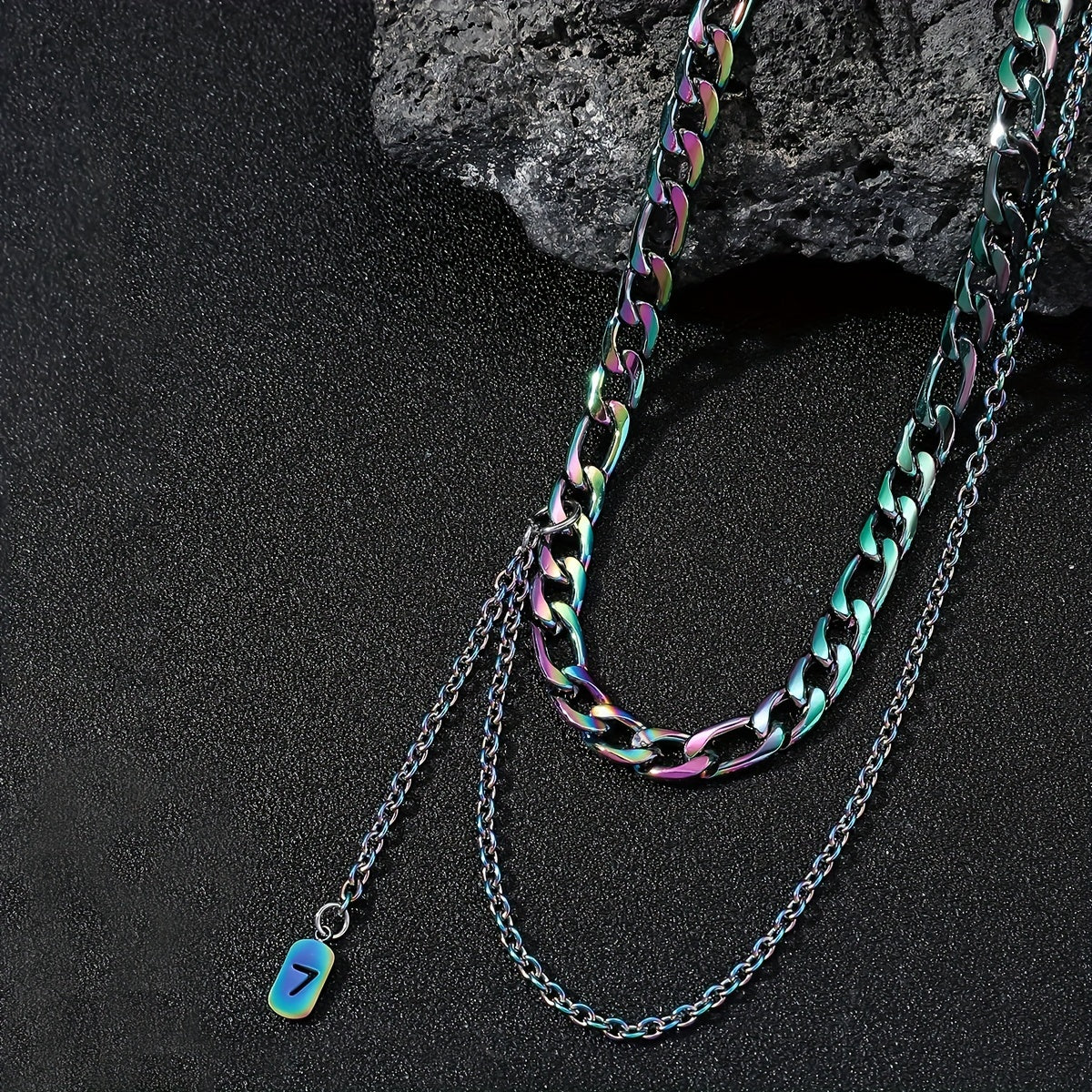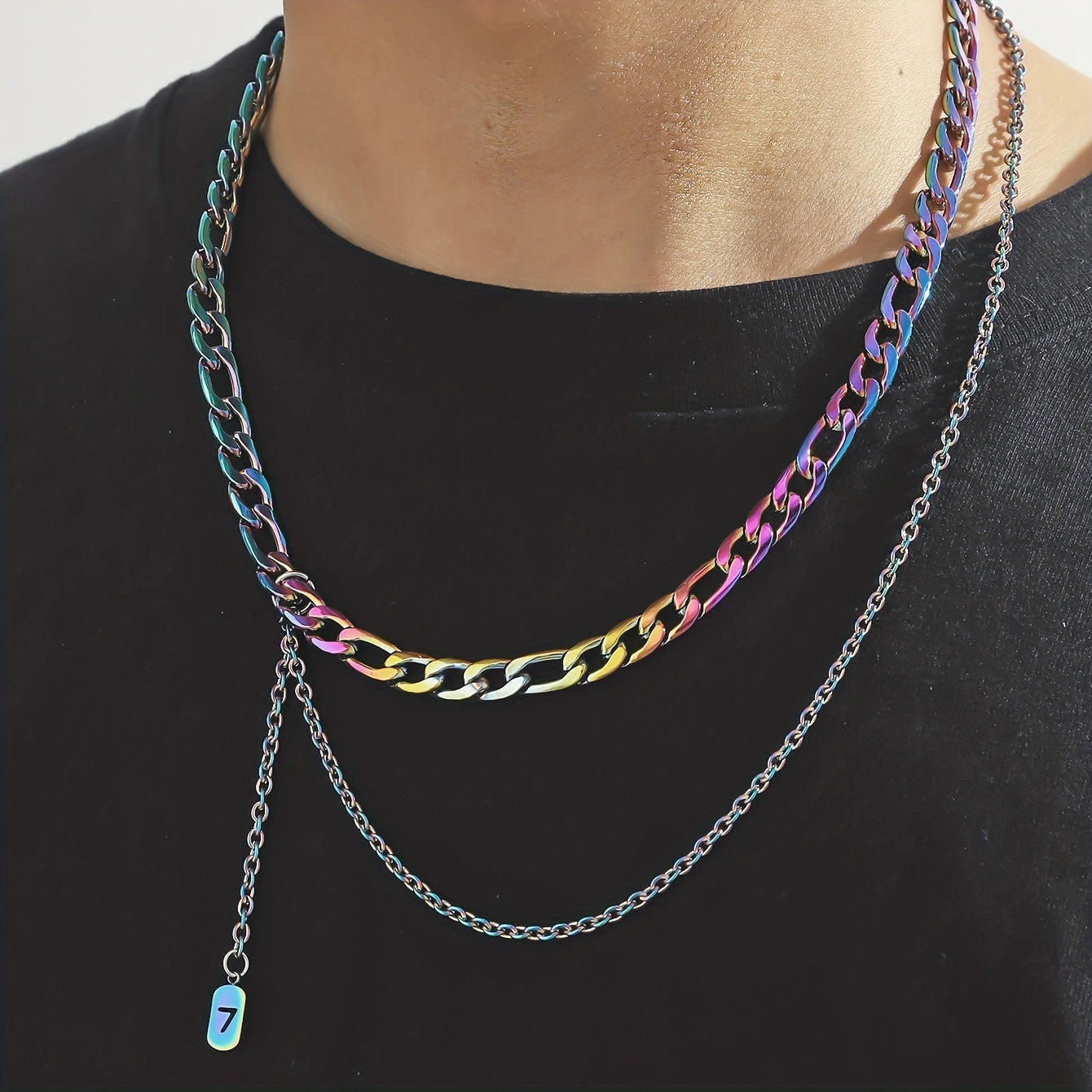 Elevate your style with this stunning men's necklace featuring a colorful Cuban chain and lucky number 7 double layer pendant. A bold and fashionable accessory.