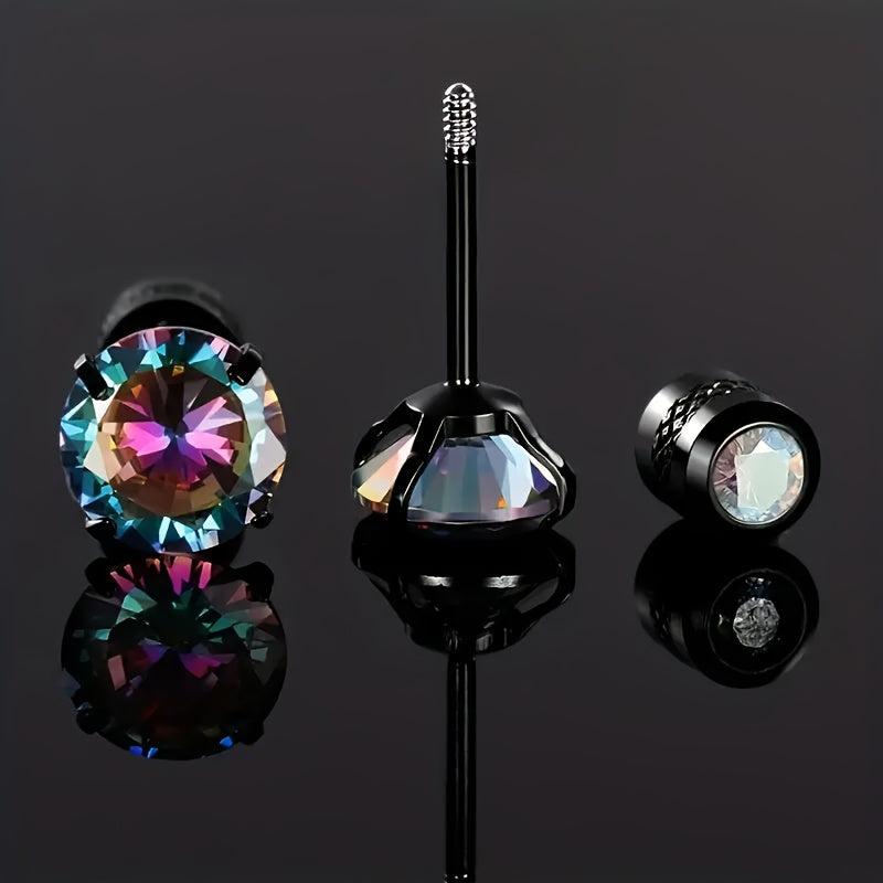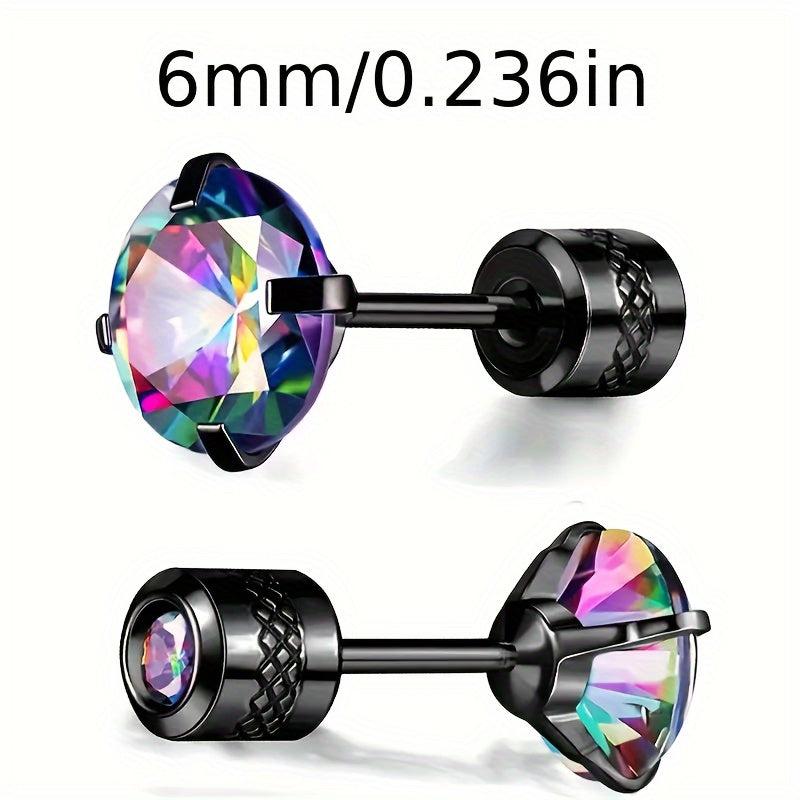 Add a pop of color to your look with these sexy stainless steel stud earrings featuring colorful synthetic cubic zirconia. Perfect for daily wear or to elevate your party outfit.