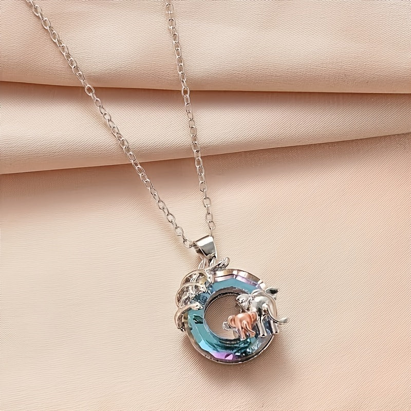 This eye-catching necklace features a colorful ring crystal elephant pendant, perfect for animal lovers.