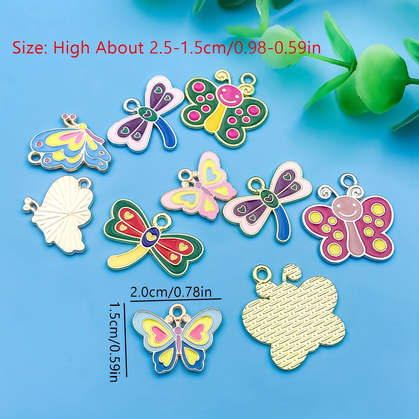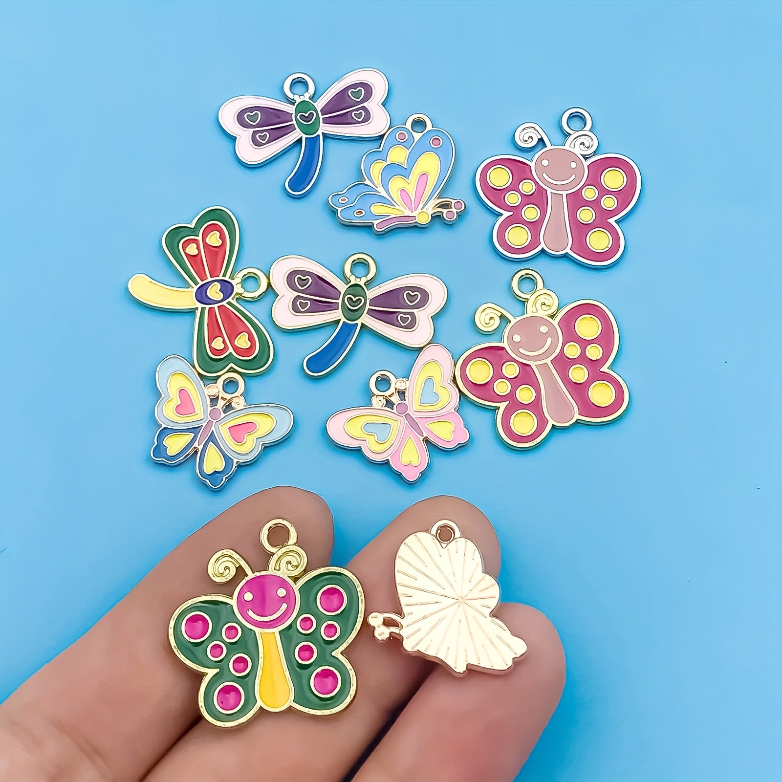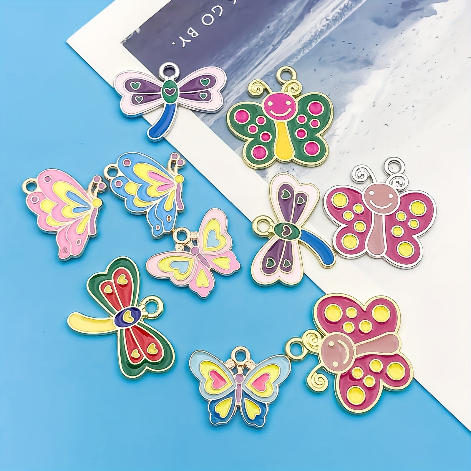 This set includes 10 small pendants in assorted dragonfly and butterfly designs, perfect for adding a pop of color to your jewelry creations. Each pendant is made of high-quality alloy with enamel detailing.