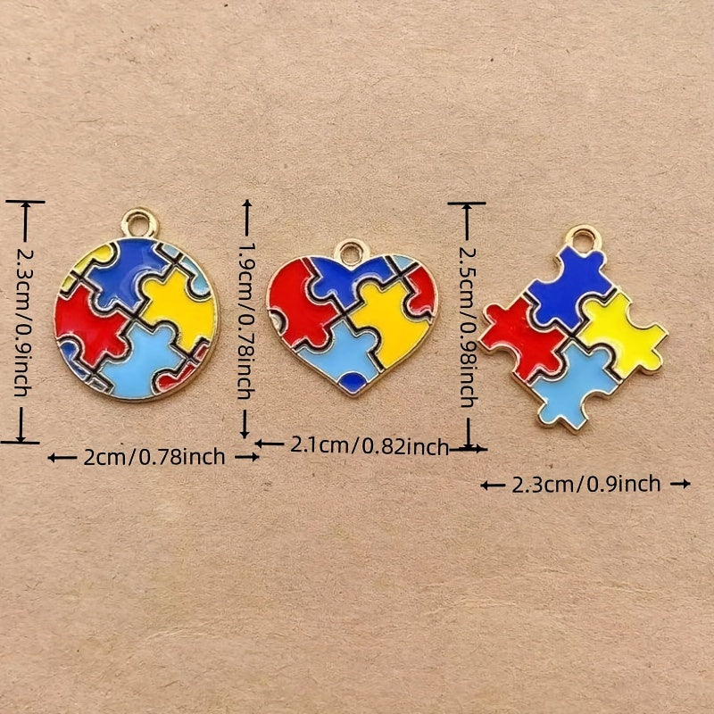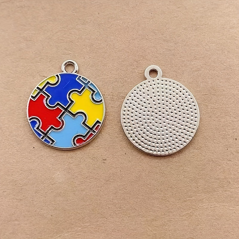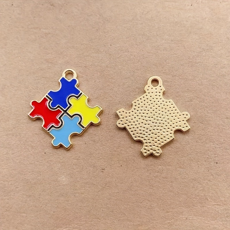 This set includes 10 colorful enamel puzzle-shaped alloy pendants that are perfect for creating your own unique earrings, bracelets, necklaces, and other accessories. The vibrant colors and intricate designs will add a fun touch to your DIY projects.