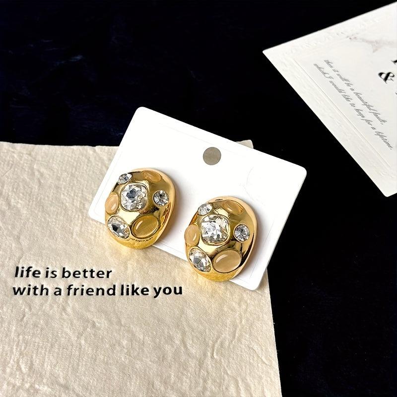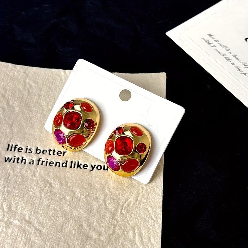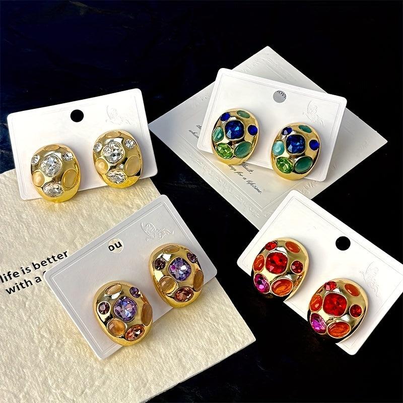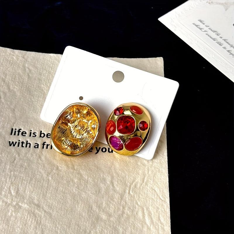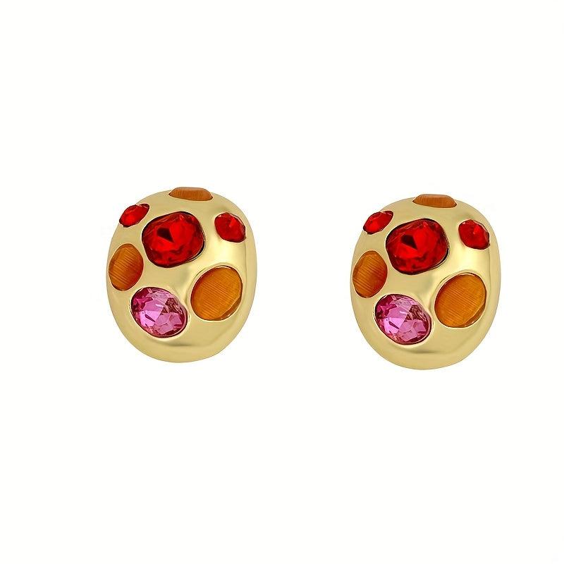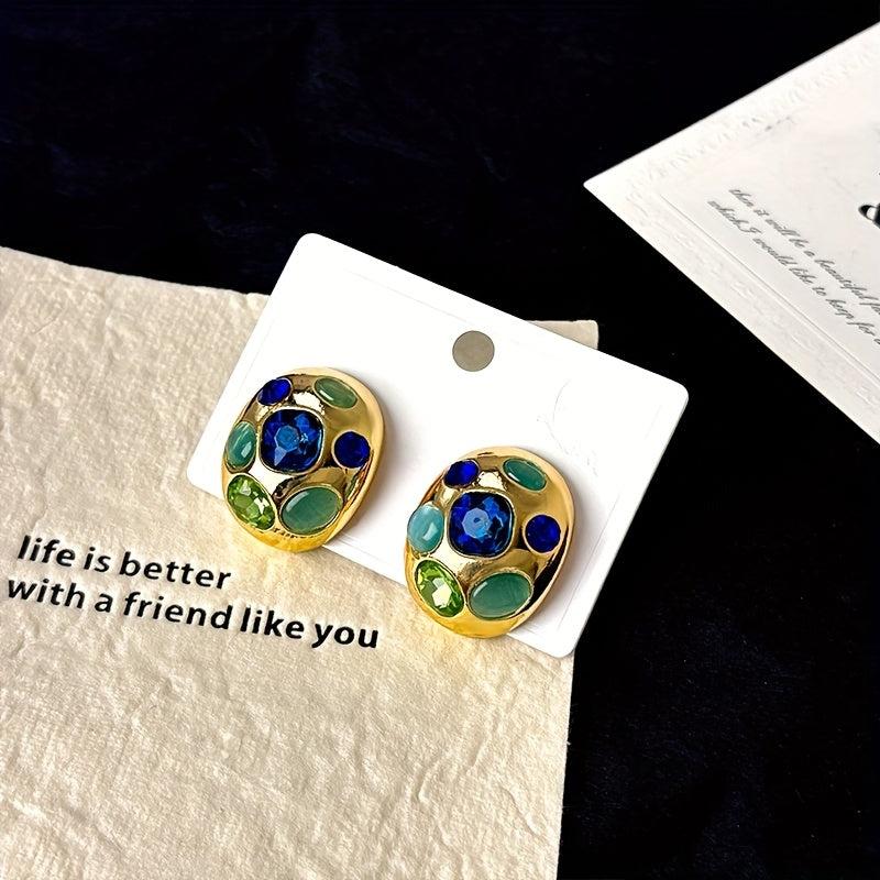 Vintage style stud earrings featuring round faux gemstones with copper posts. Made of high-quality alloy material. Perfect accessory for men.