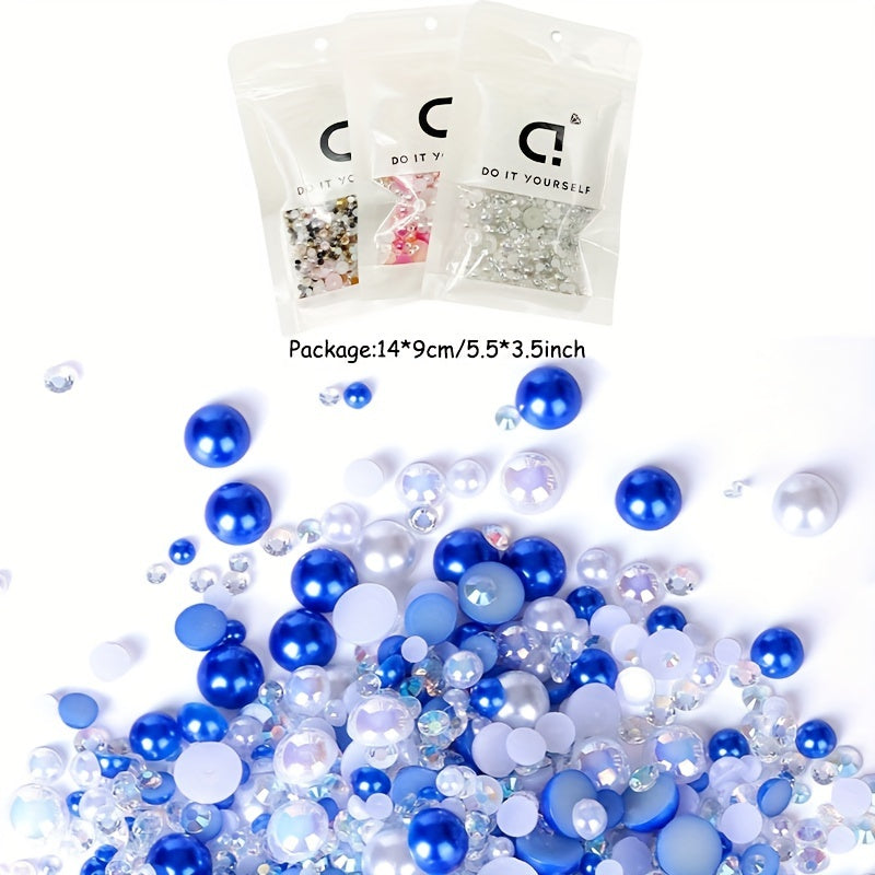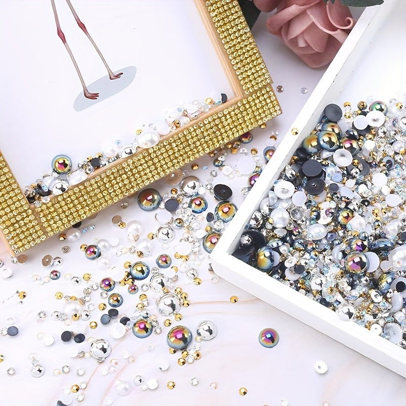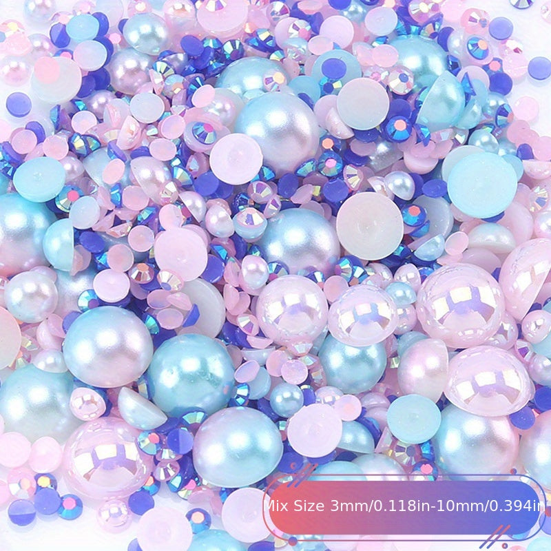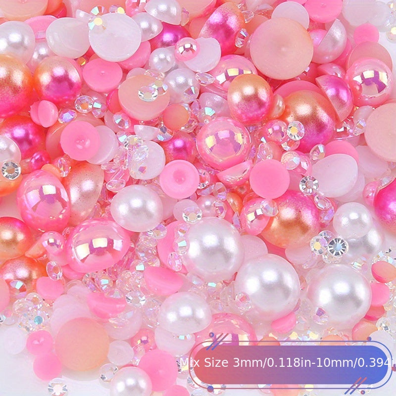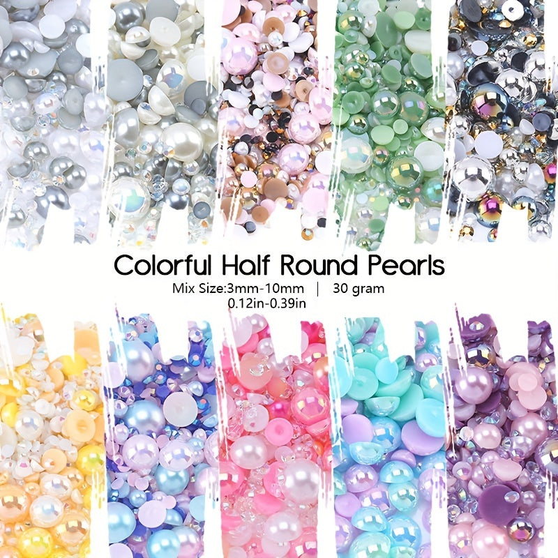 Enhance your jewelry creations with this 30g pack of 3mm and 10mm colorful flatback rhinestones and half pearls. Perfect for adding a touch of sparkle and elegance to your DIY projects.