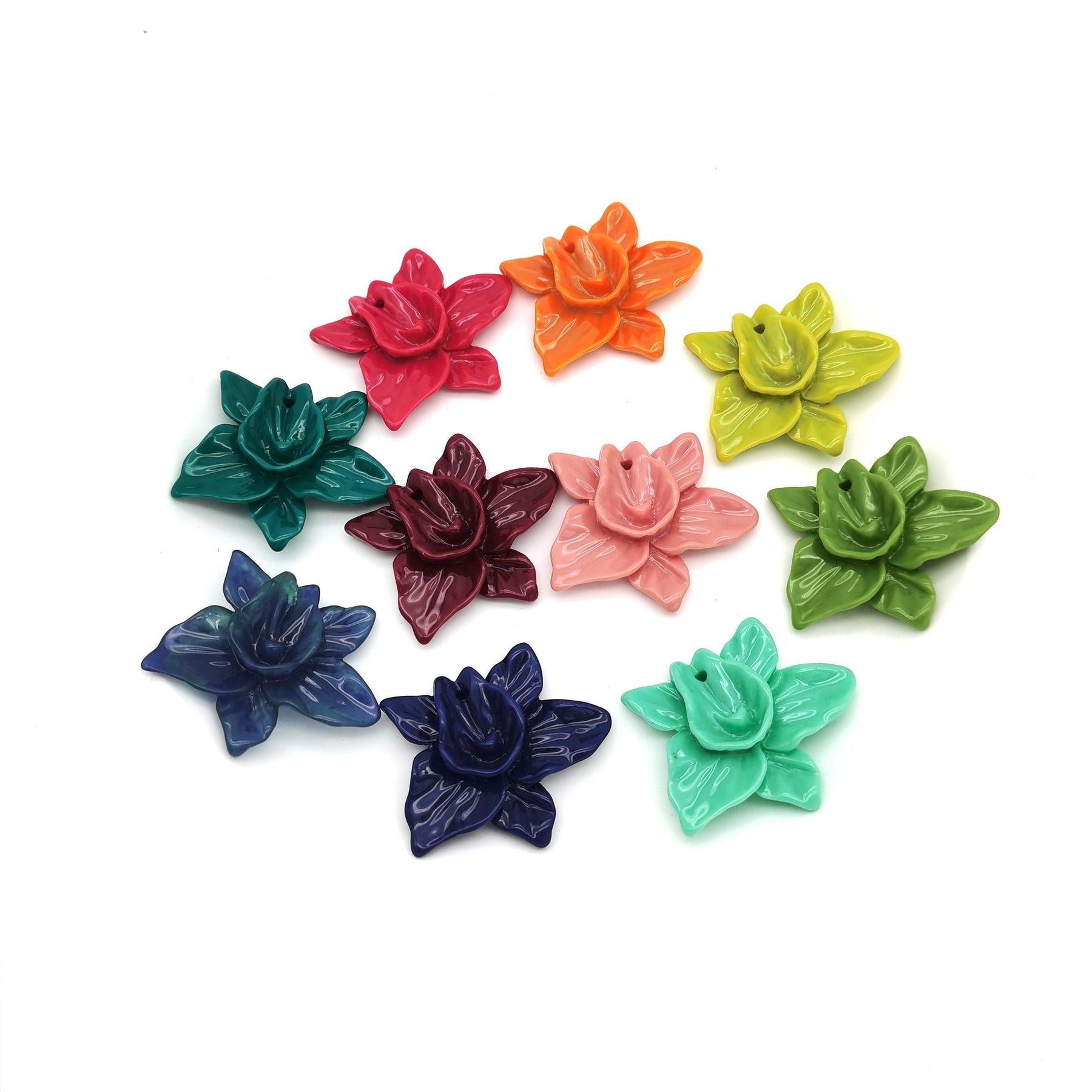 Create beautiful drop earrings, bracelets, necklaces and more with this resin flower and leaf punch pendant.
