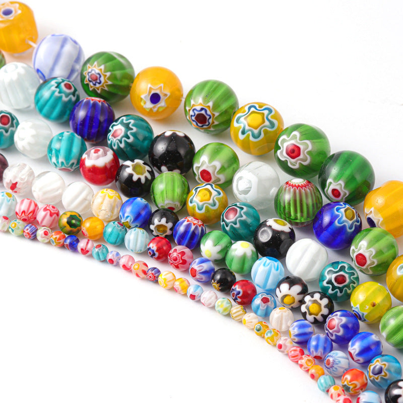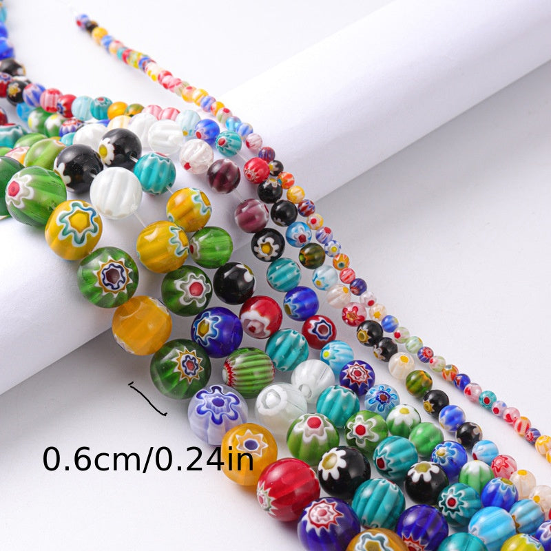 These lovely glass beads featuring colorful flower patterns are perfect for creating unique bracelets and necklaces.