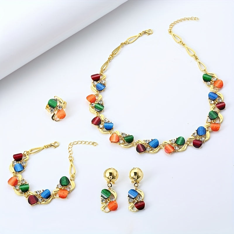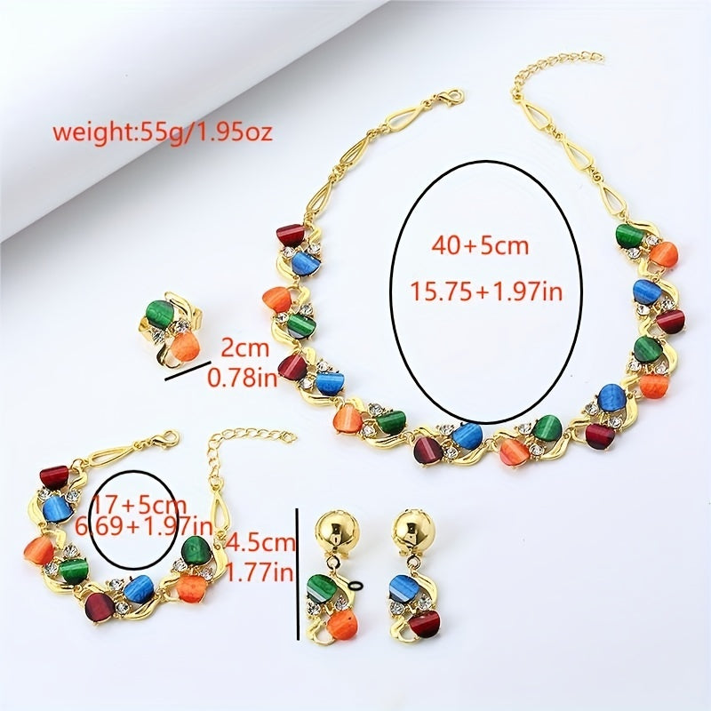 Make a statement with this vibrant jewelry set featuring exaggerated colorful glitter and rhinestone detailing. Perfect for adding a pop of color to your look.