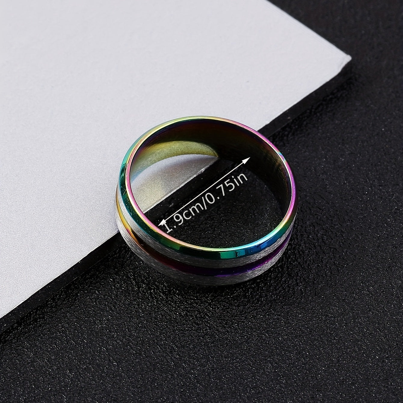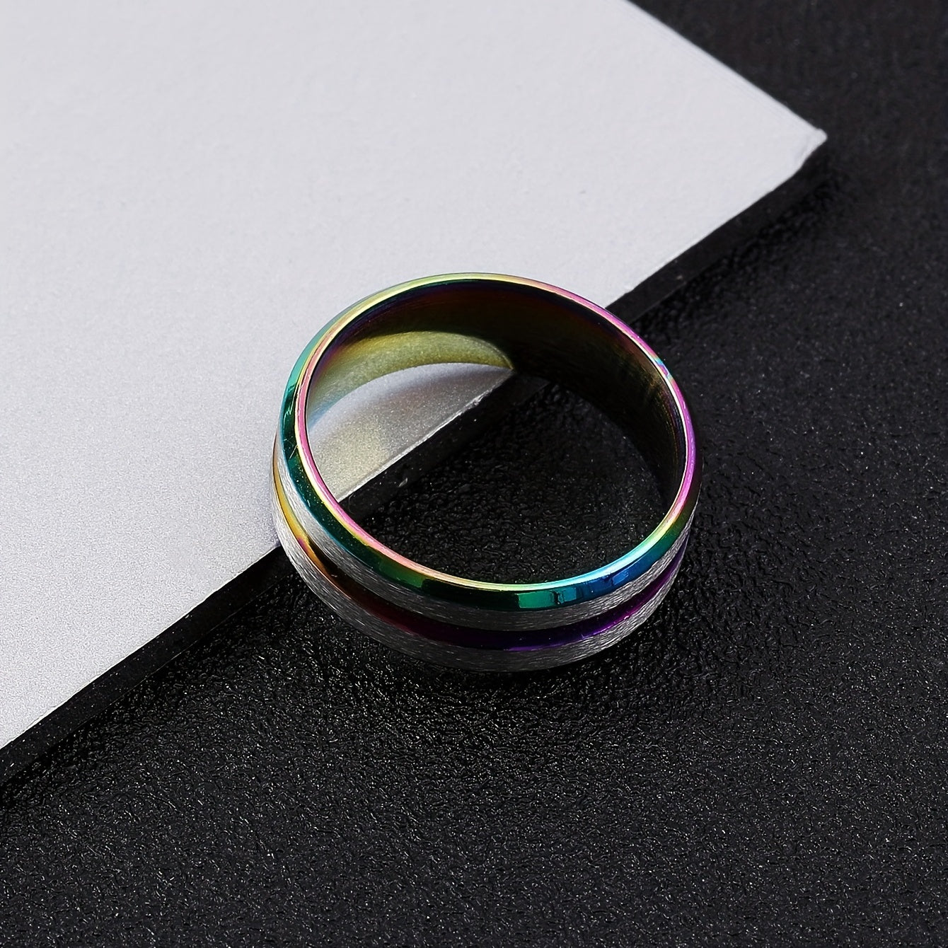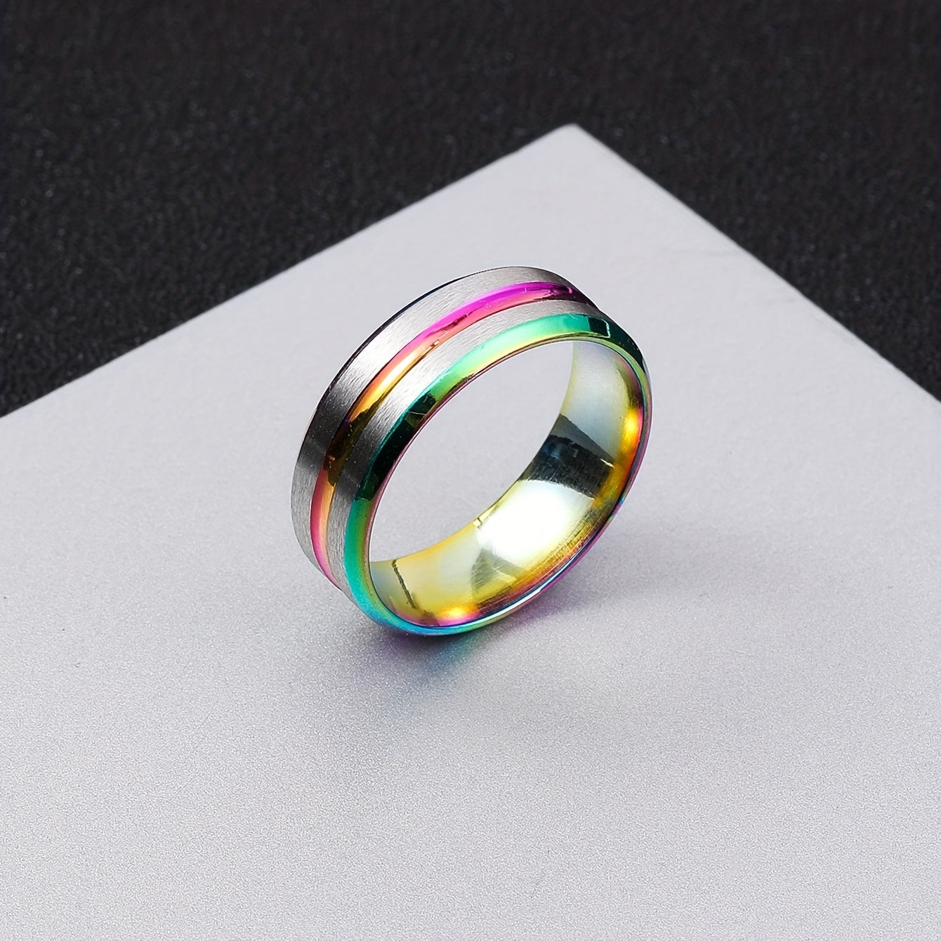 Add a pop of color and style to your look with this stainless steel ring featuring vibrant grooves.