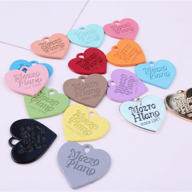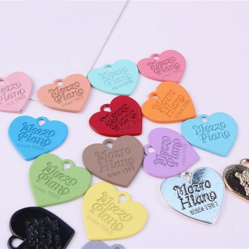 Add a pop of color to your look with these vibrant heart-shaped earrings featuring English letters. These alloy earrings are perfect for adding a fun touch to your outfit.