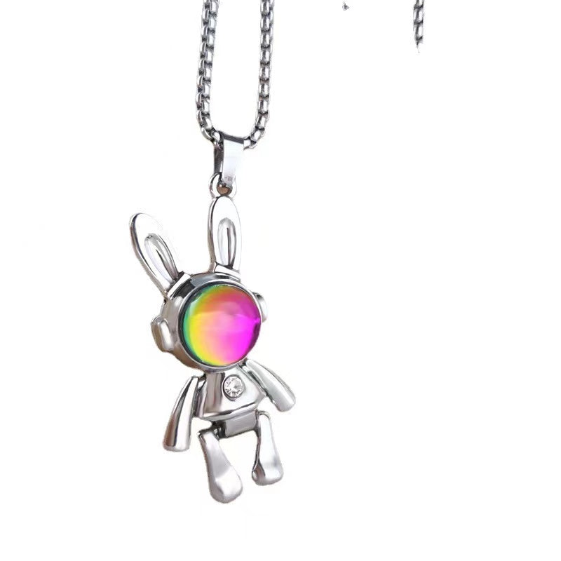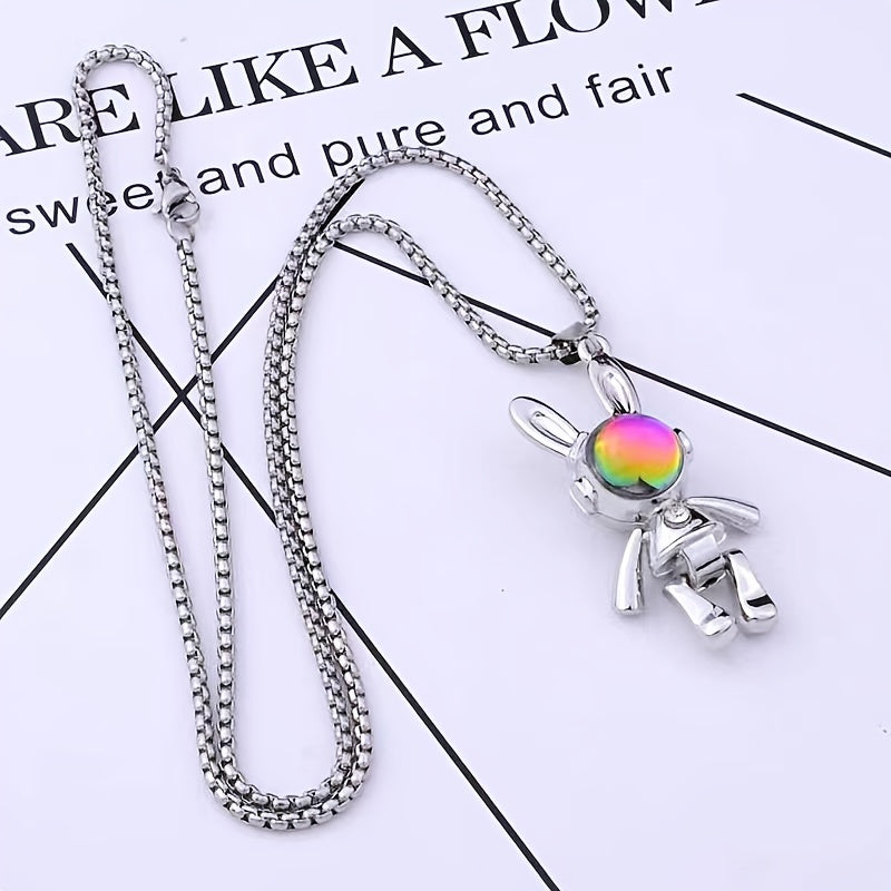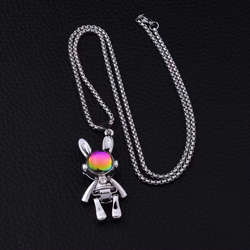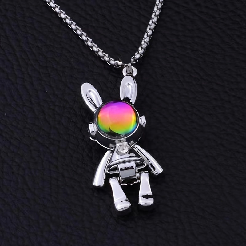 This unique pendant features a movable mechanical rabbit design, making it a fun and stylish accessory for men. It's a great gift idea for those who appreciate whimsical and creative jewelry.