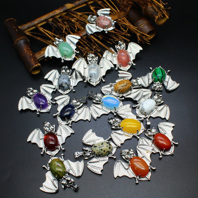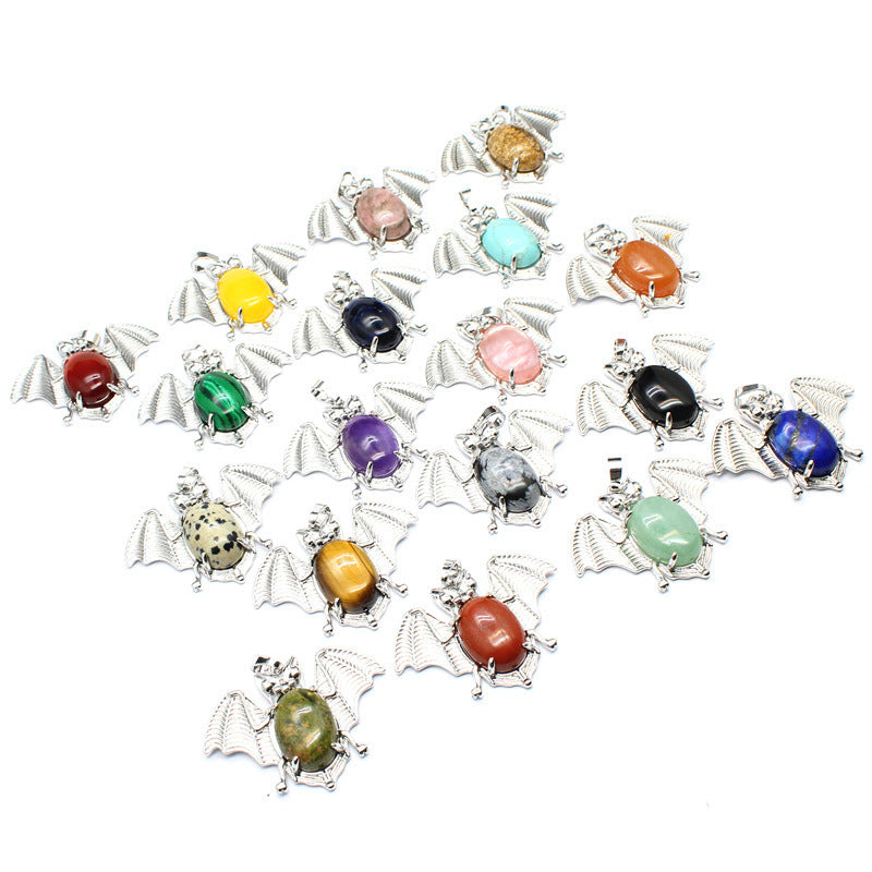 Enhance your creativity with this small bat-shaped pendant made of colorful natural stone. Perfect for women and men who enjoy crafting their own unique jewelry pieces.