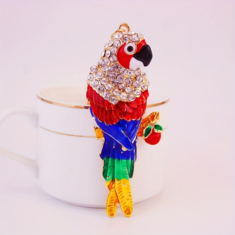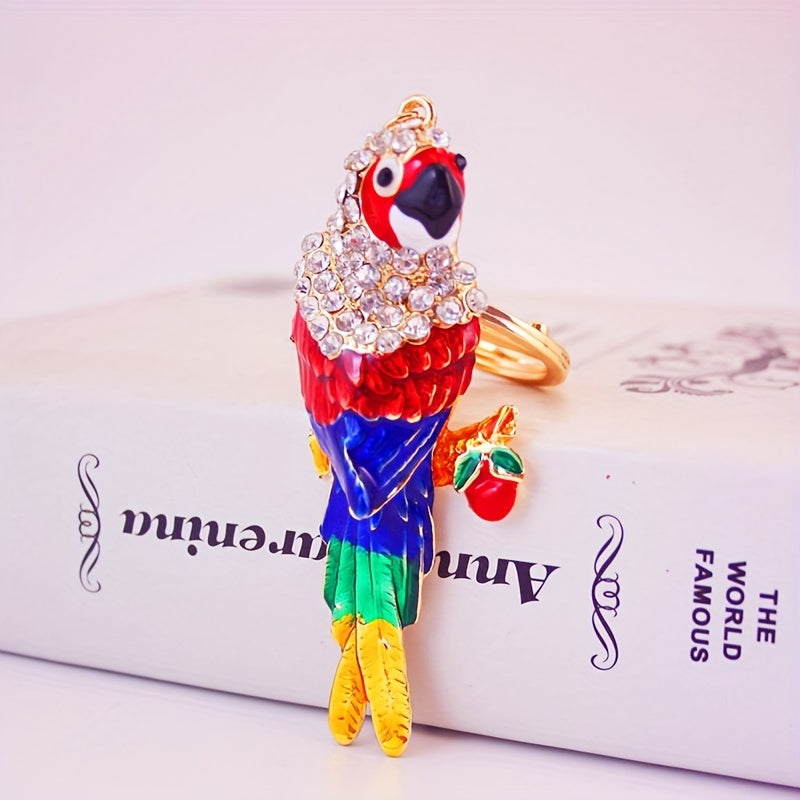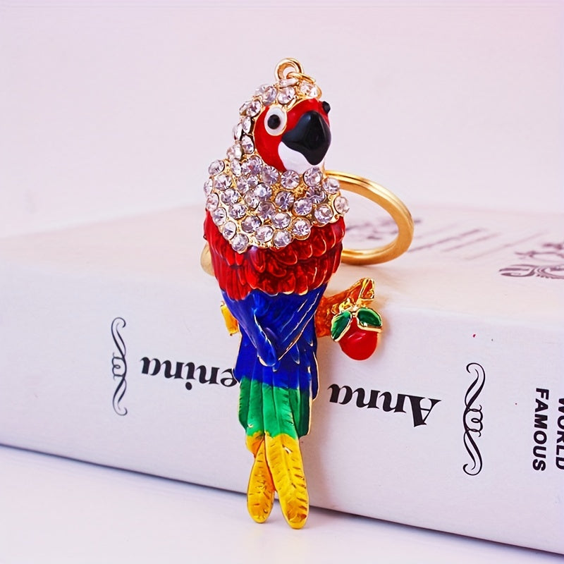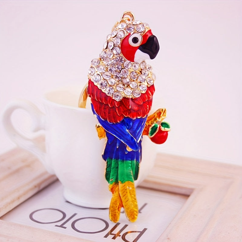 This lovely key chain features an alloy colorful parrot design, making it a charming accessory. It is a perfect small gift for bird lovers.