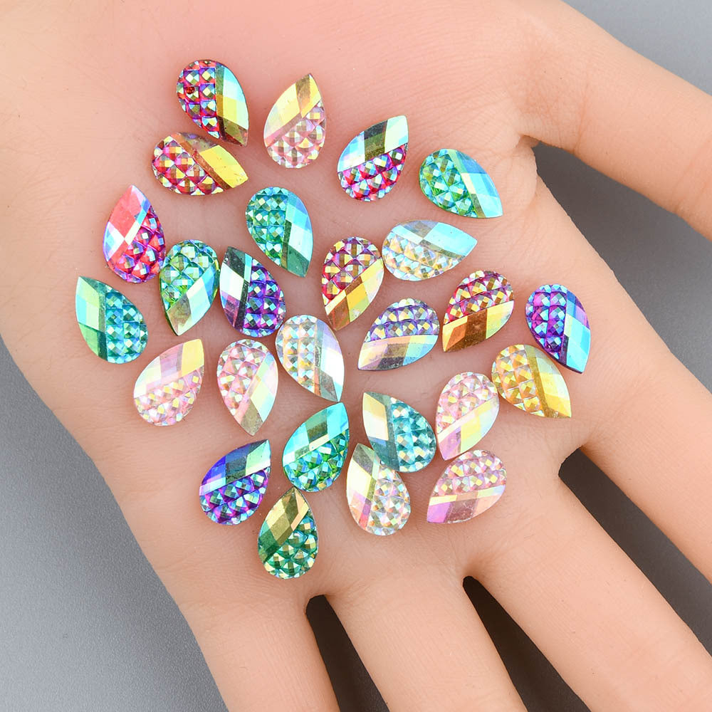 Get a pack of 30-60pcs of 0.8-1.0 inch colorful resin water drop shape charms for your jewelry making projects. These flat back charms are perfect for adding a pop of color and creativity to your designs.