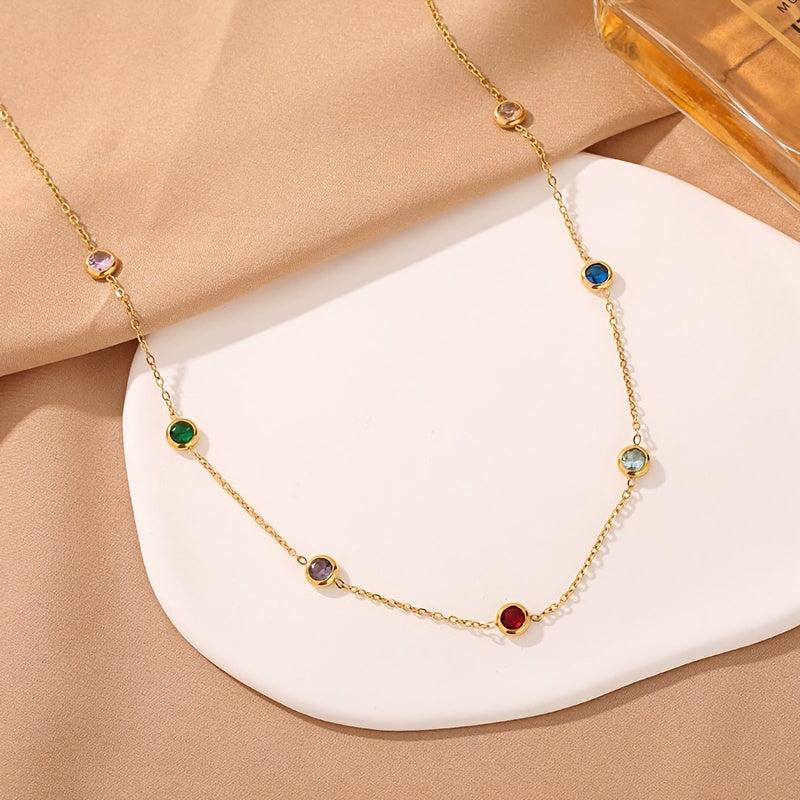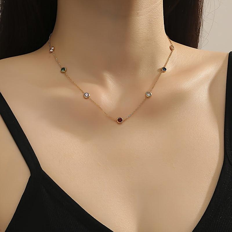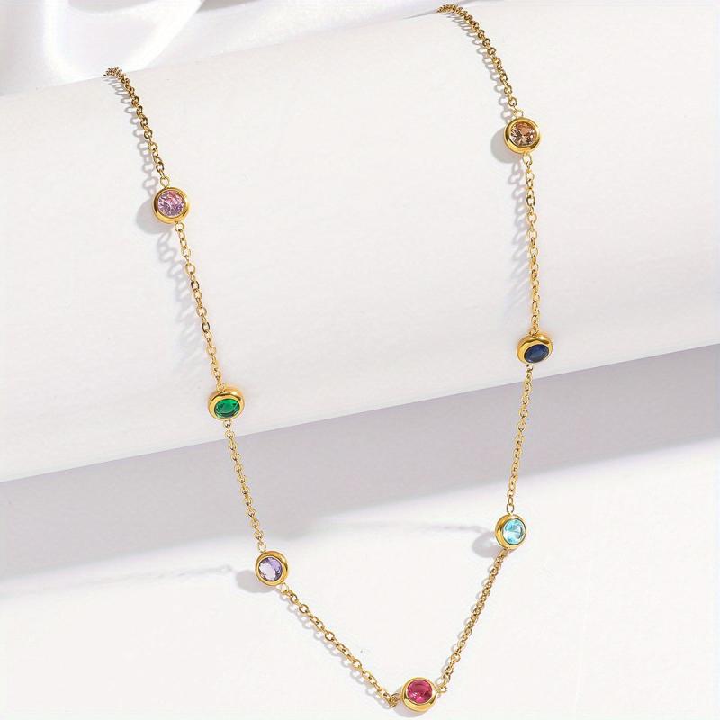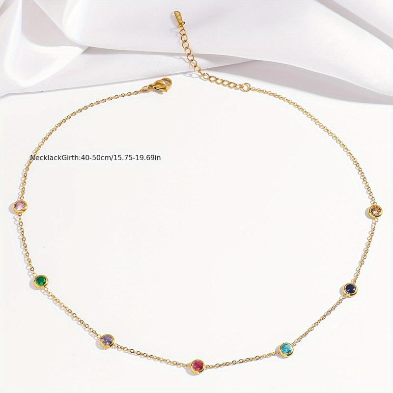 Embody elegance with this stainless steel necklace featuring seven colorful bead pendants. Perfect for travel, vacations, birthday parties, and more.