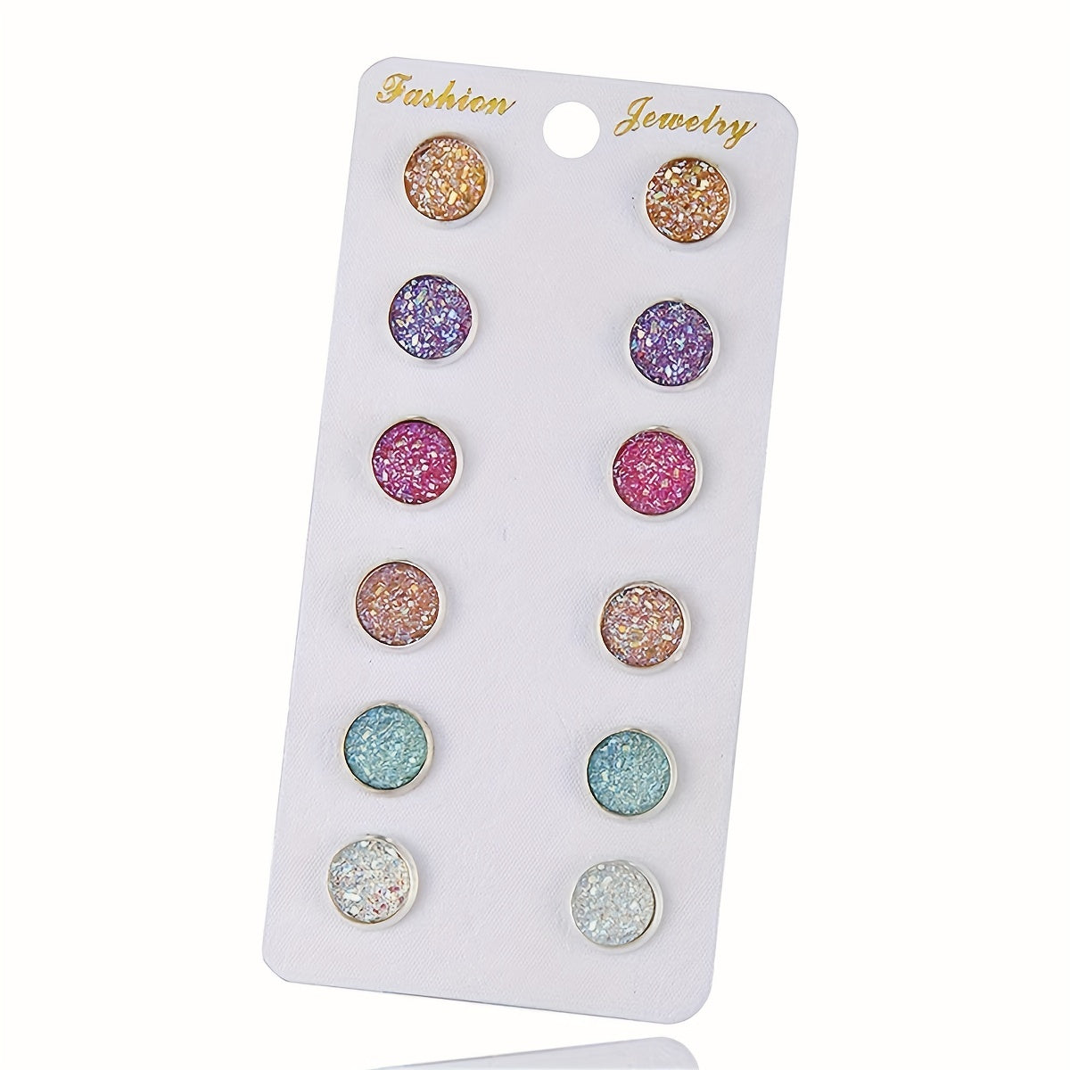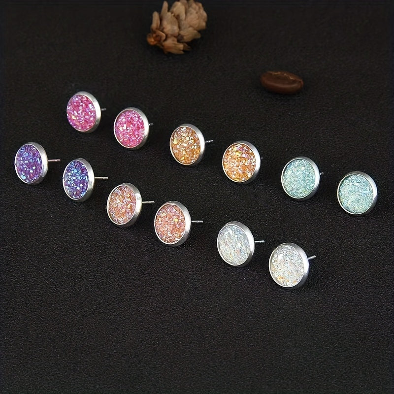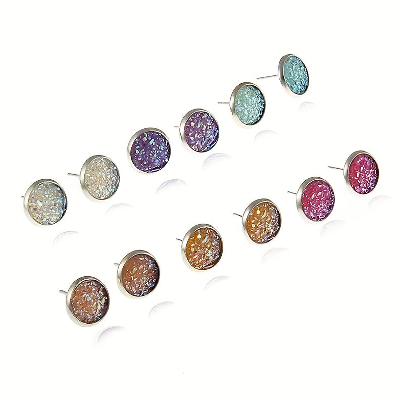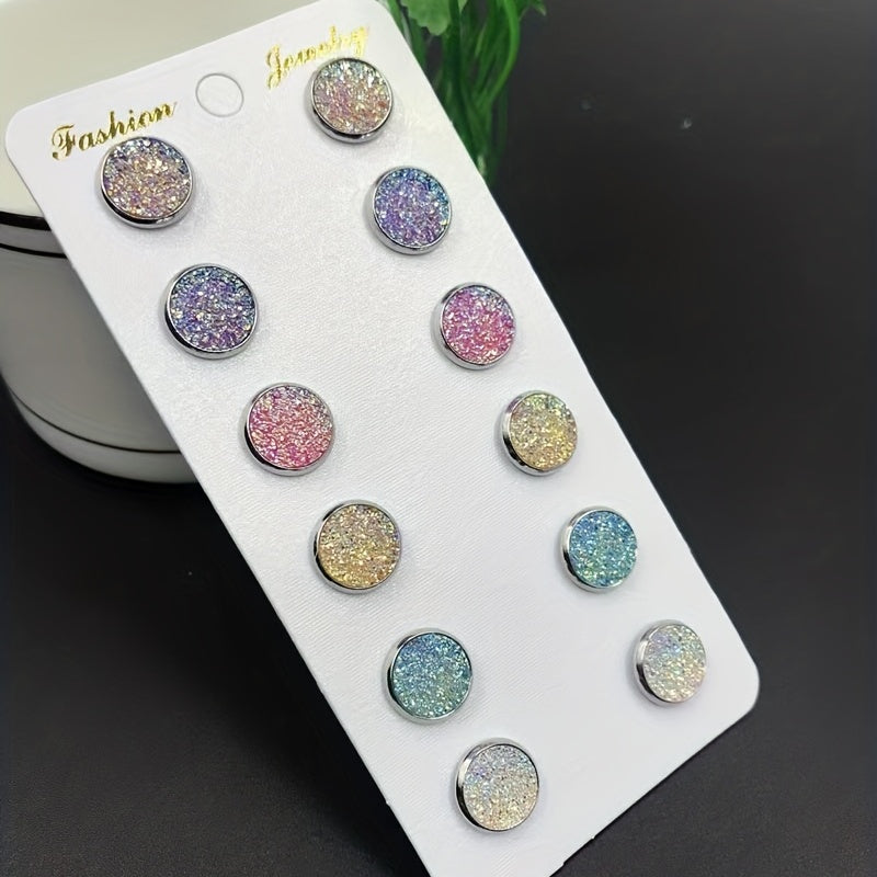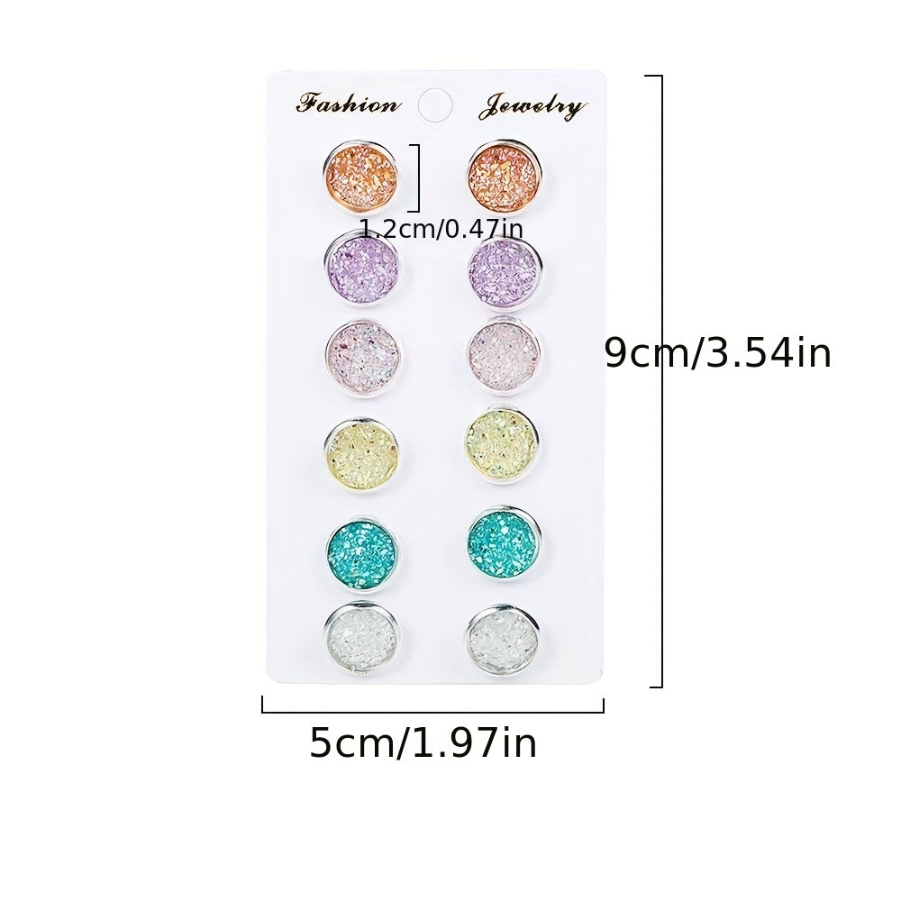 Add a pop of color and sparkle to your outfit with this set of 6 round sequin stud earrings. Each earring features a crystal cluster disc design, perfect for adding a touch of delicacy to your party look. Makes a great gift for any jewelry lover.