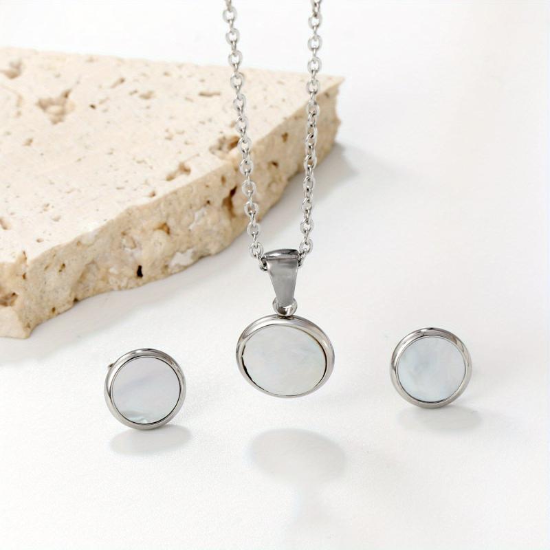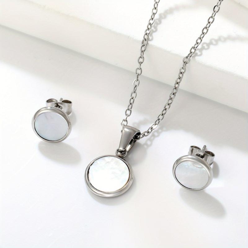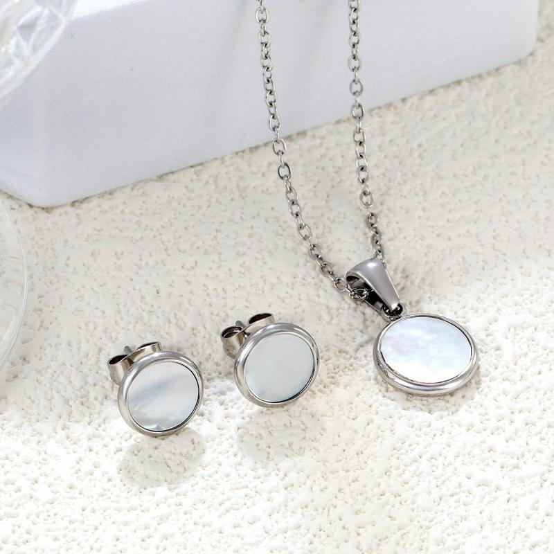 Add a touch of elegance to your outfits with this stainless steel necklace and earrings set. Suitable for banquets, ceremonies, shopping, or everyday wear.