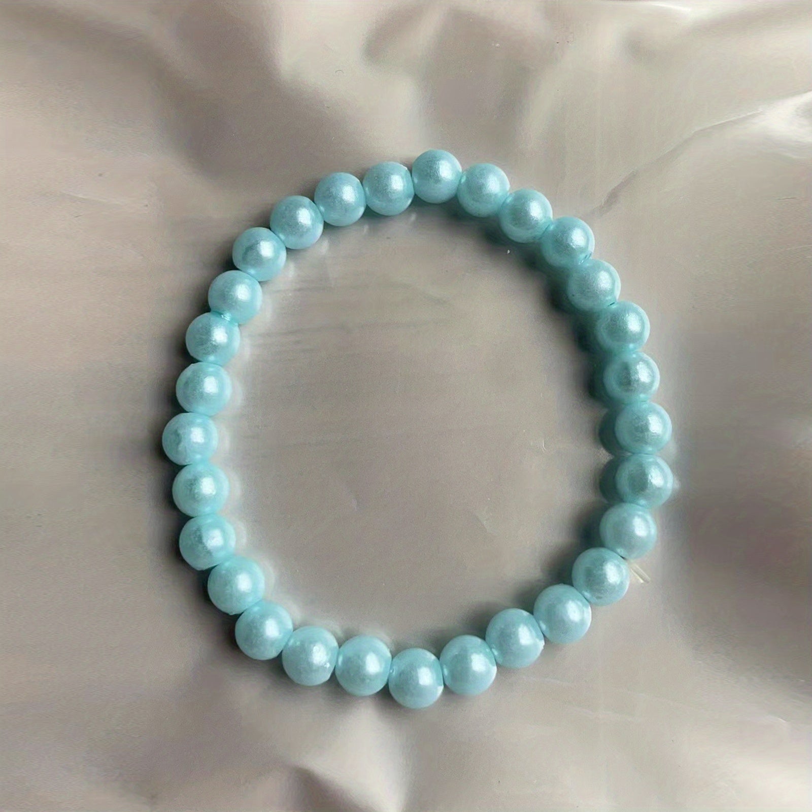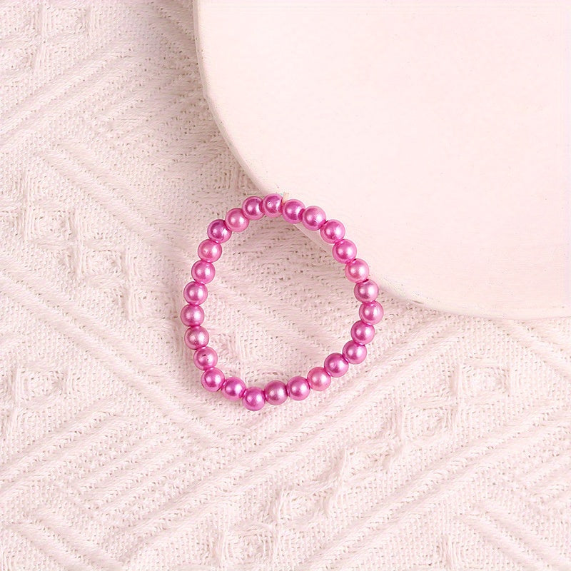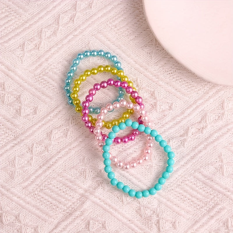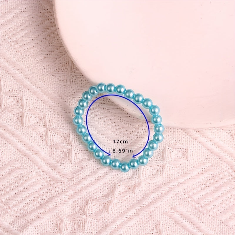 This beautiful bracelet features colored simulated pearls and acrylic beads on a string. It makes a perfect accessory for girls and a unique niche jewelry gift.