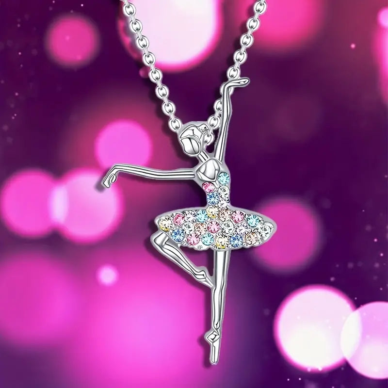 This pendant necklace features a colorful skirt ballet design, making it a unique piece of jewelry for men or couples.