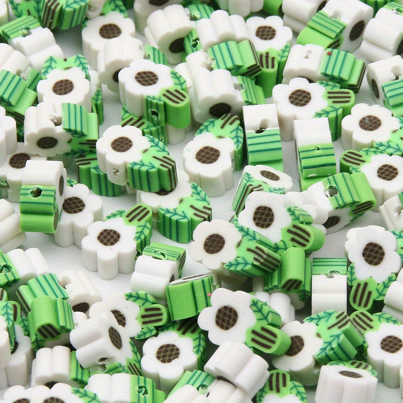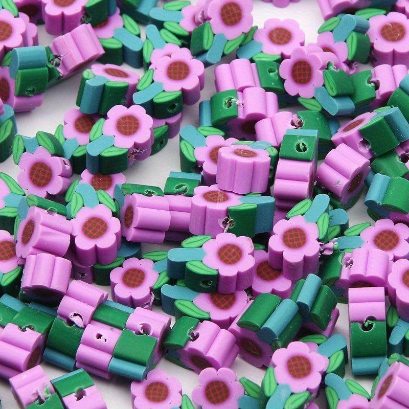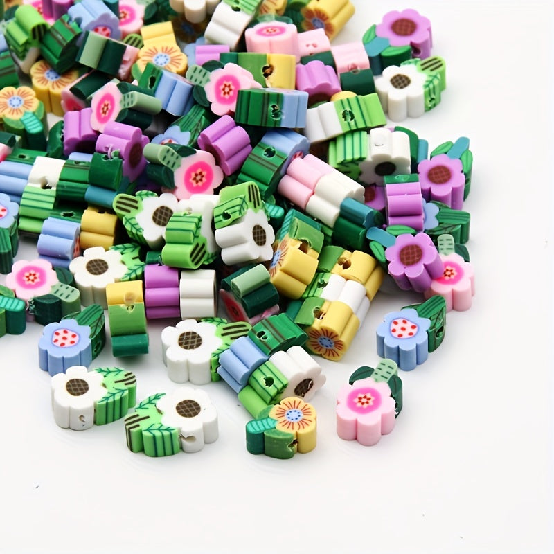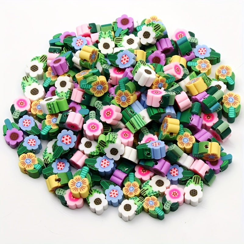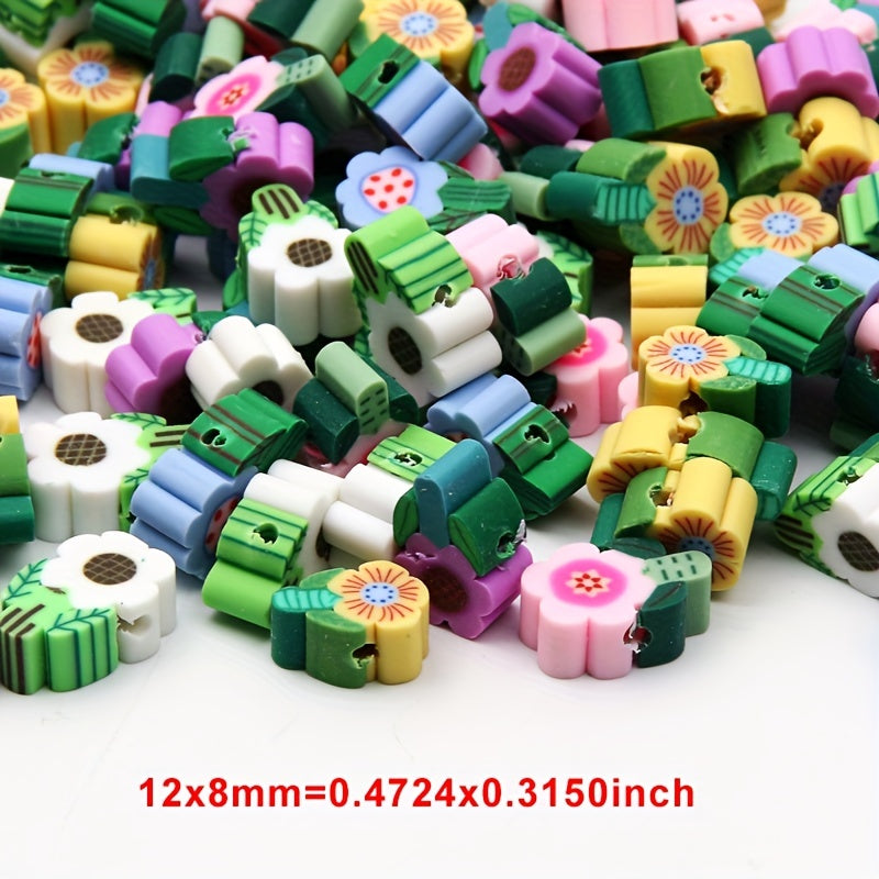 Create your own unique jewelry with this set of 50 small soft pottery beads featuring colorful flower patterns. Perfect for making bracelets, necklaces, and other accessories.