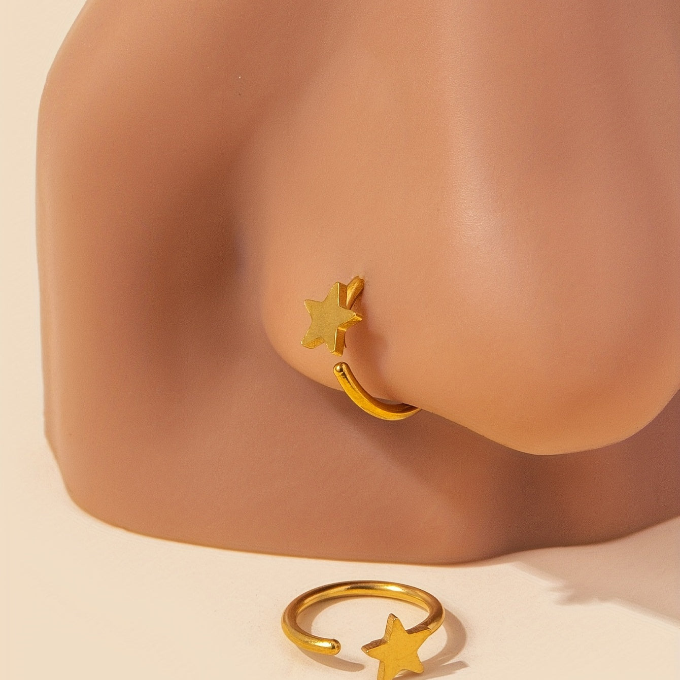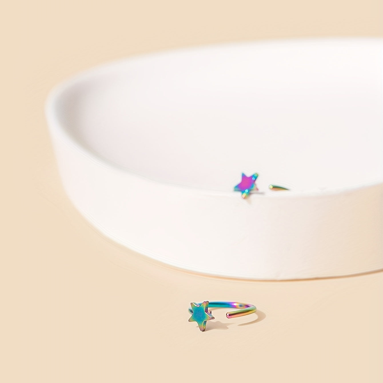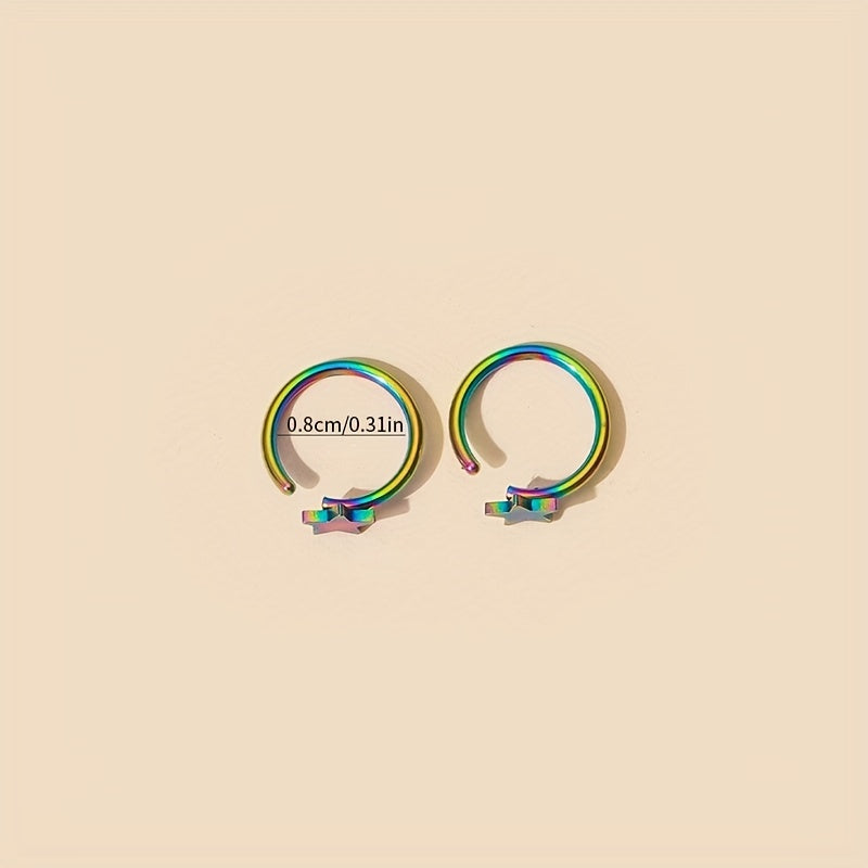 Add a pop of color to your look with this stylish colorful star hoop nose ring. The C shaped design is perfect for septum or nostril piercings.