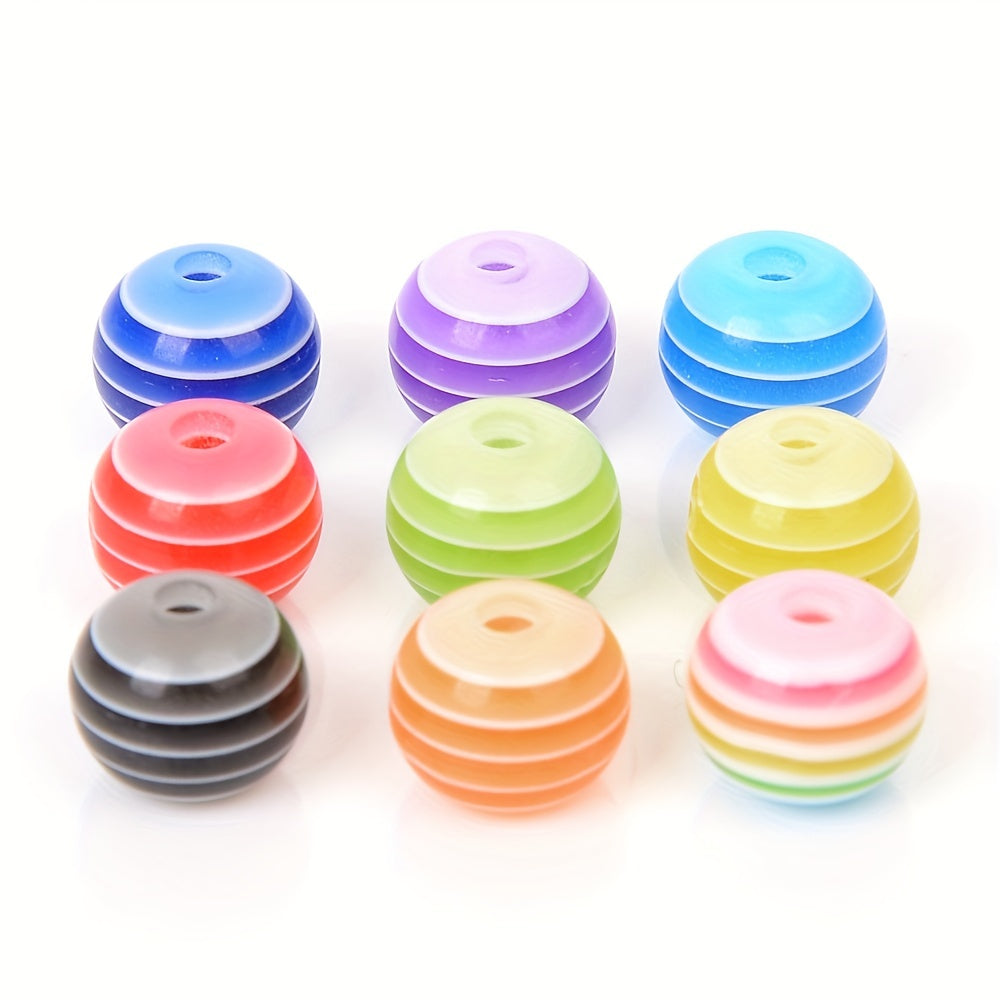 These vibrant rainbow striped resin beads are perfect for creating eye-catching jewelry pieces. Each bead is round in shape and can be used as spacer beads in various jewelry designs.