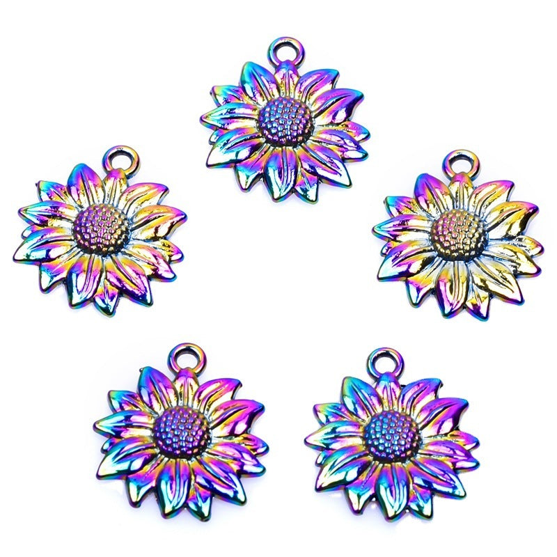 This pendant necklace features a colorful sunflower design, perfect for adding a pop of color to any outfit.