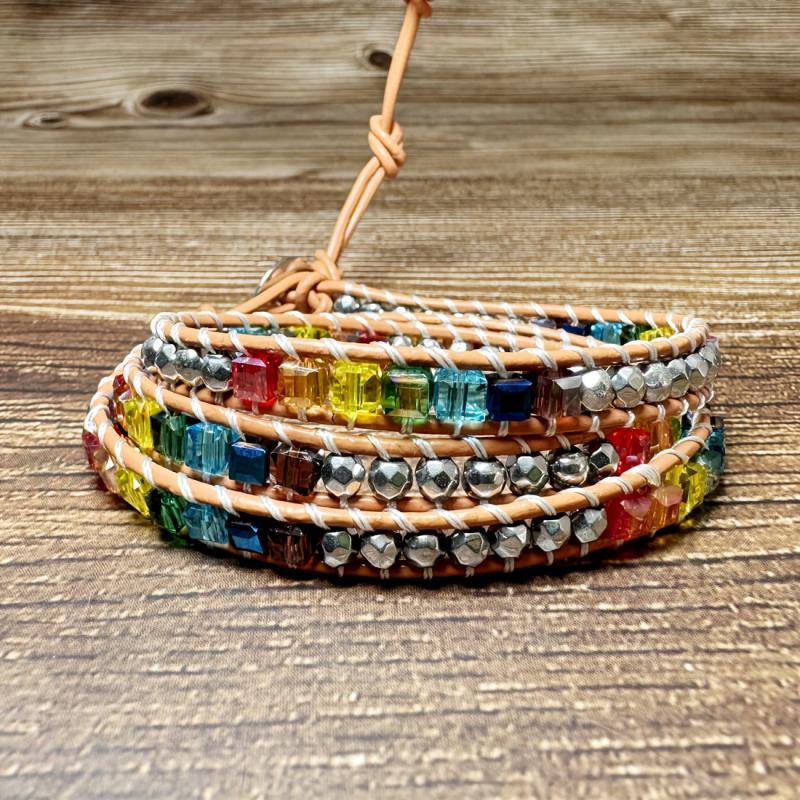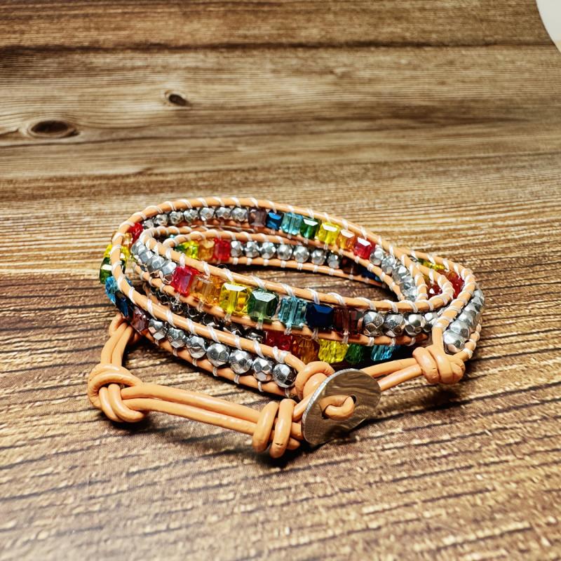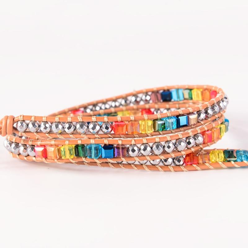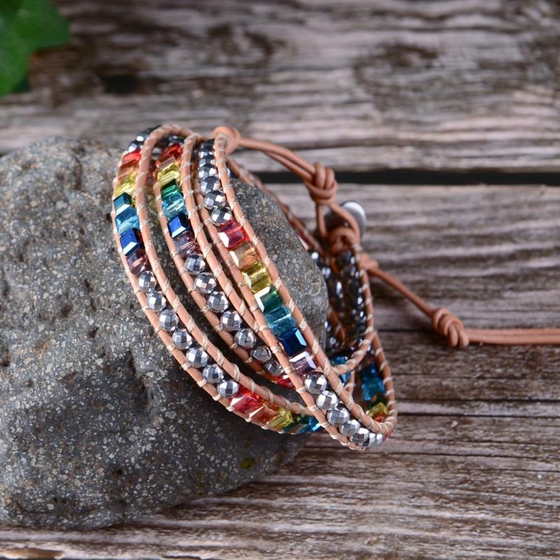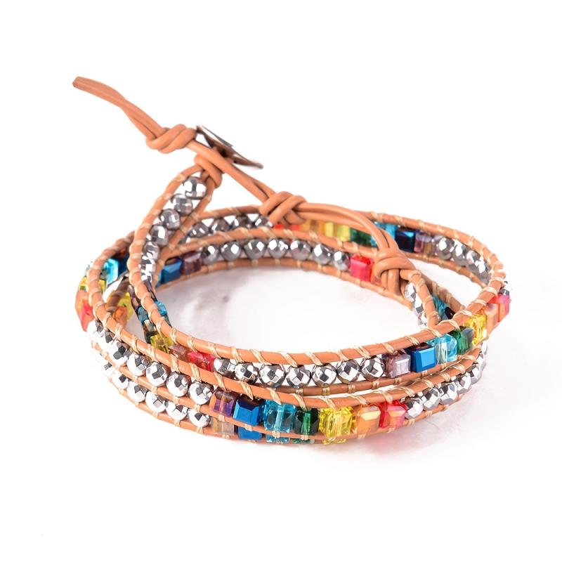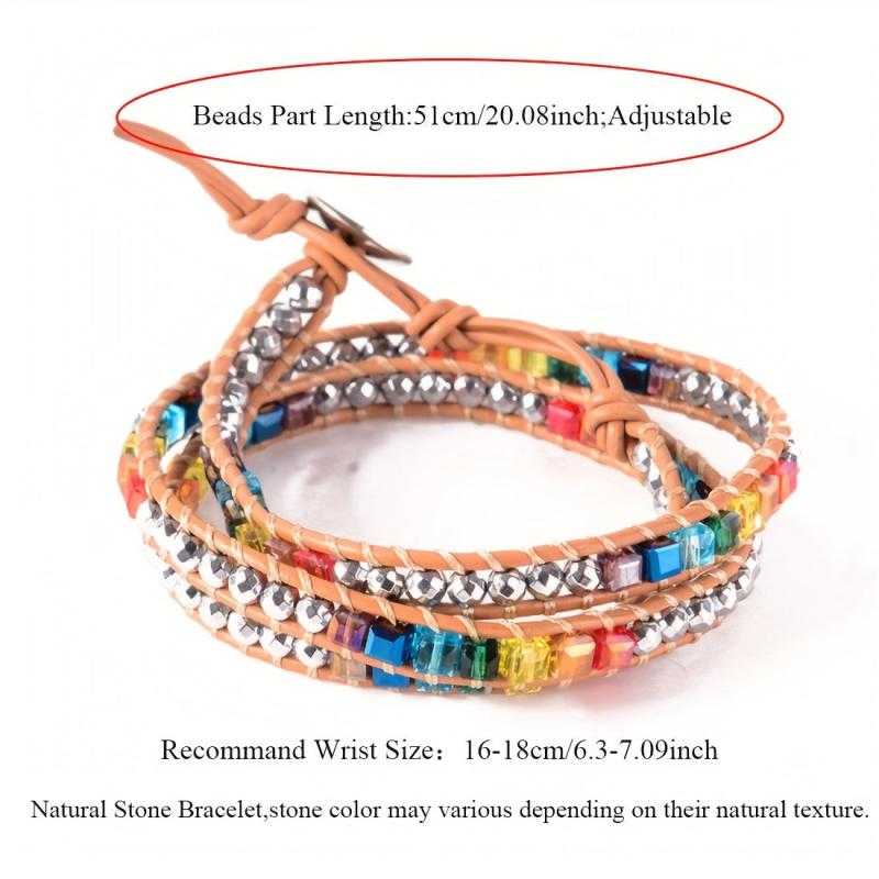 Add a touch of natural stone elegance to your outfit with this adjustable three-layer ethnic style woven bracelet. The vibrant colors and unique design make it a standout accessory for any occasion.