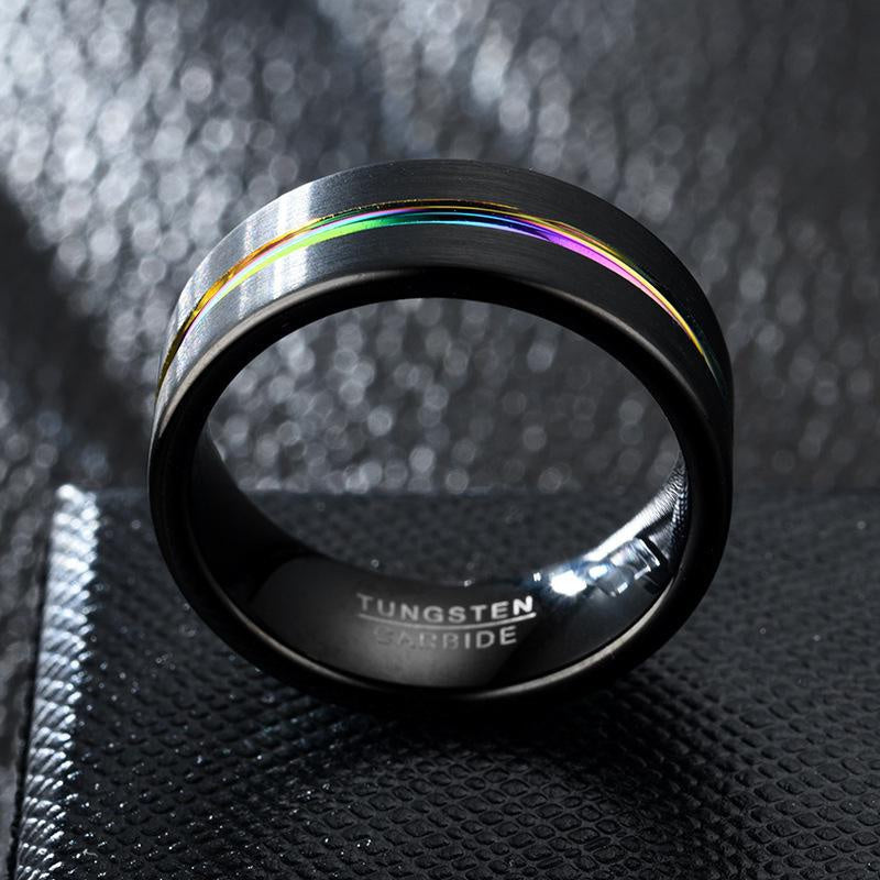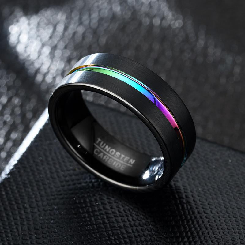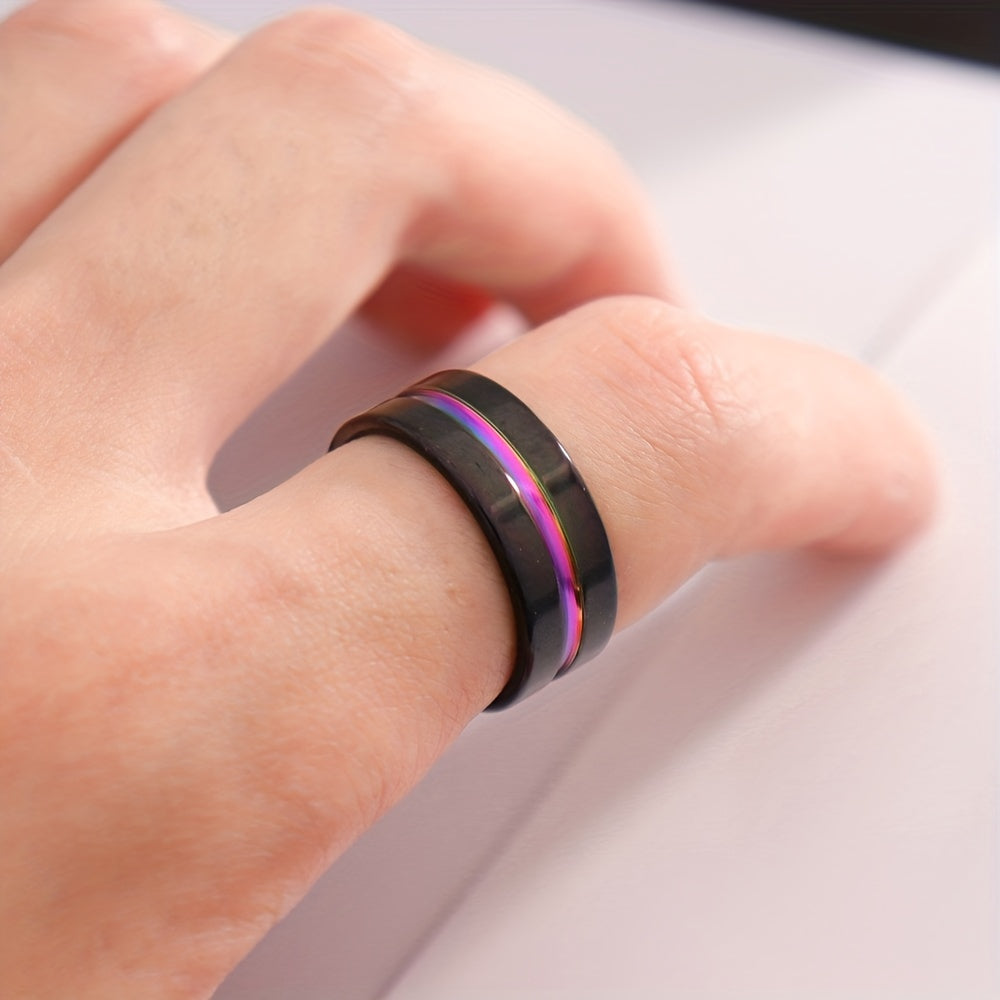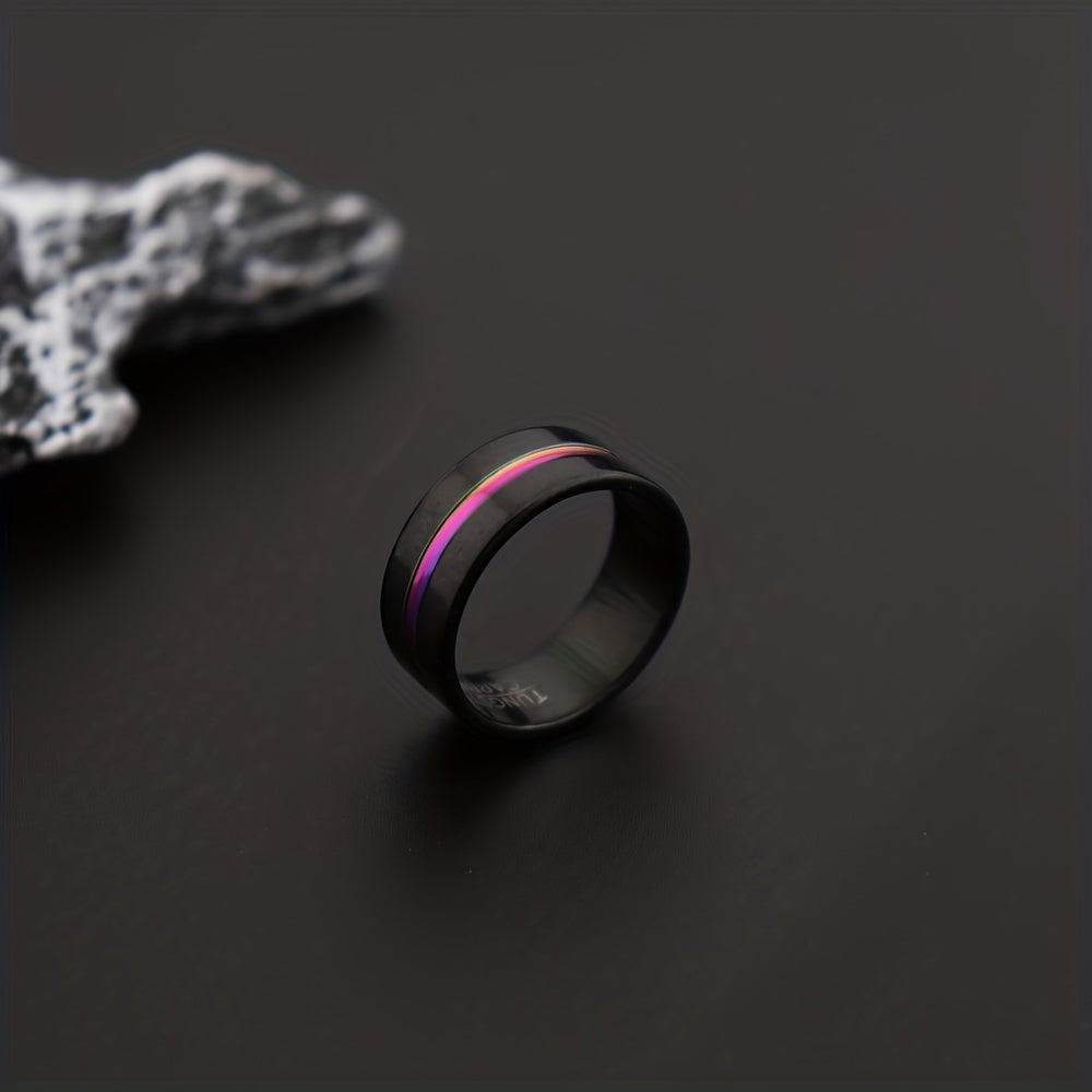This 8MM wide slotted ring is made of colorful titanium steel, perfect for men.