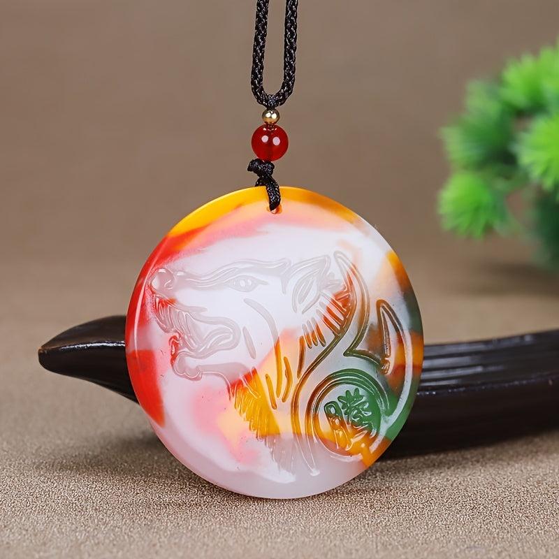 Show off your wild side with this vibrant wolf head pendant necklace designed for men.