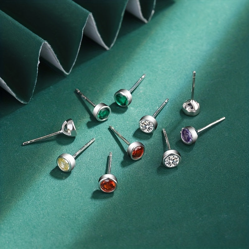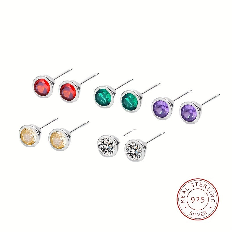 Add a pop of color to your outfit with these retro style zircon stud earrings. Made with 925 silver plating, these earrings are perfect for daily casual wear.