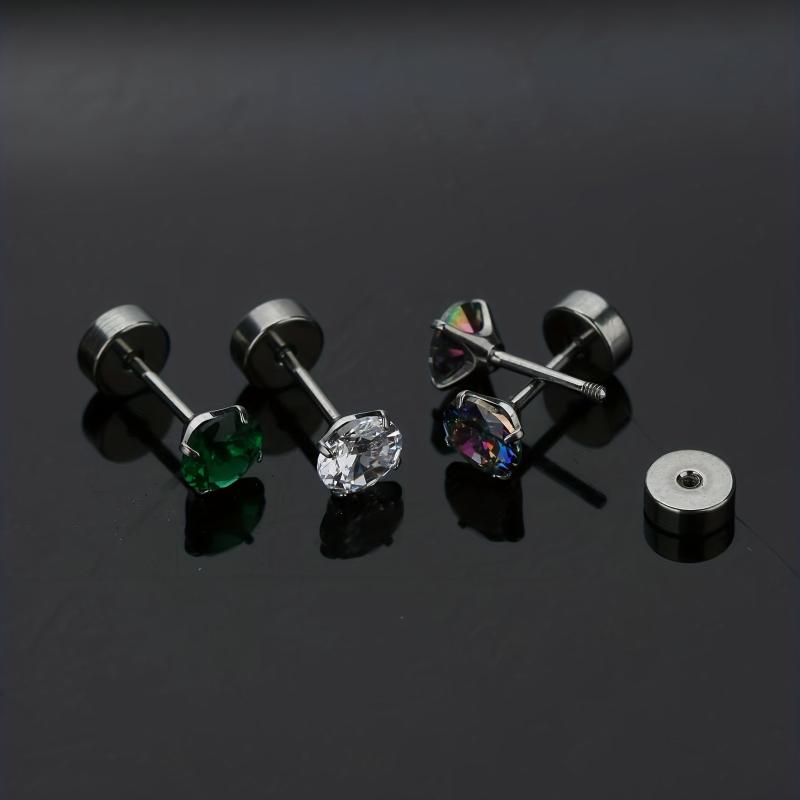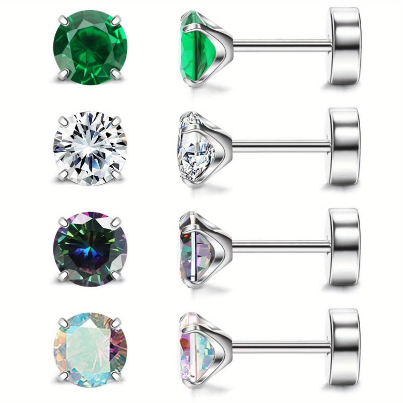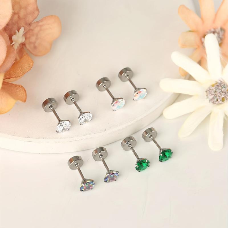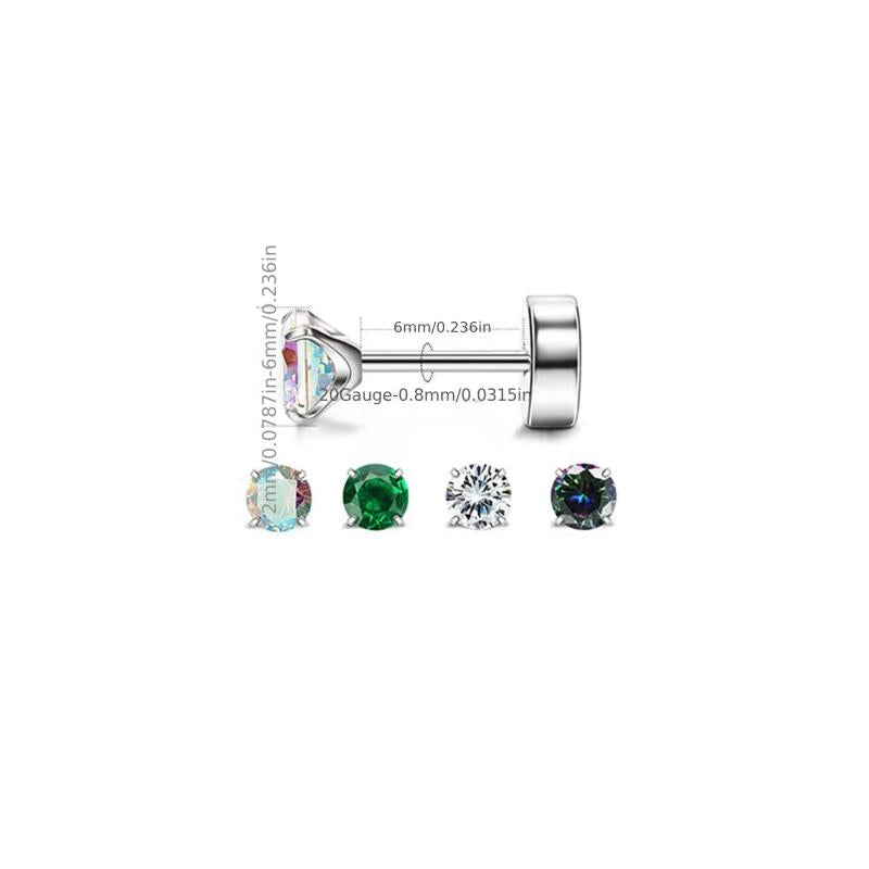 Add a pop of color to your outfit with these colorful zircon stud earrings. Made of titanium steel with a hypoallergenic steel needle, perfect for daily wear.