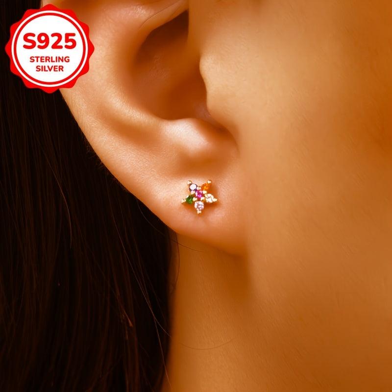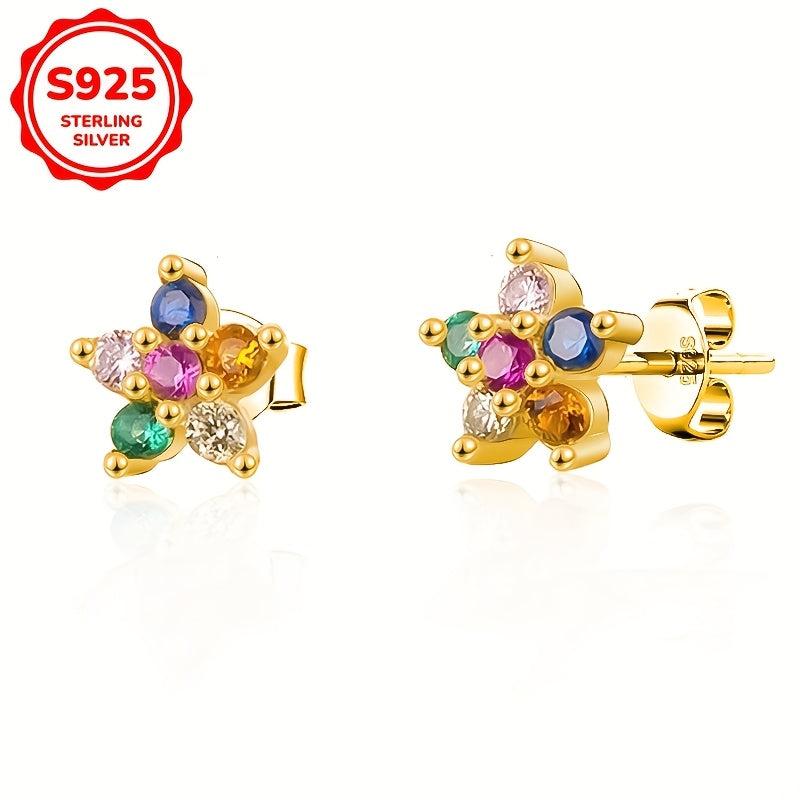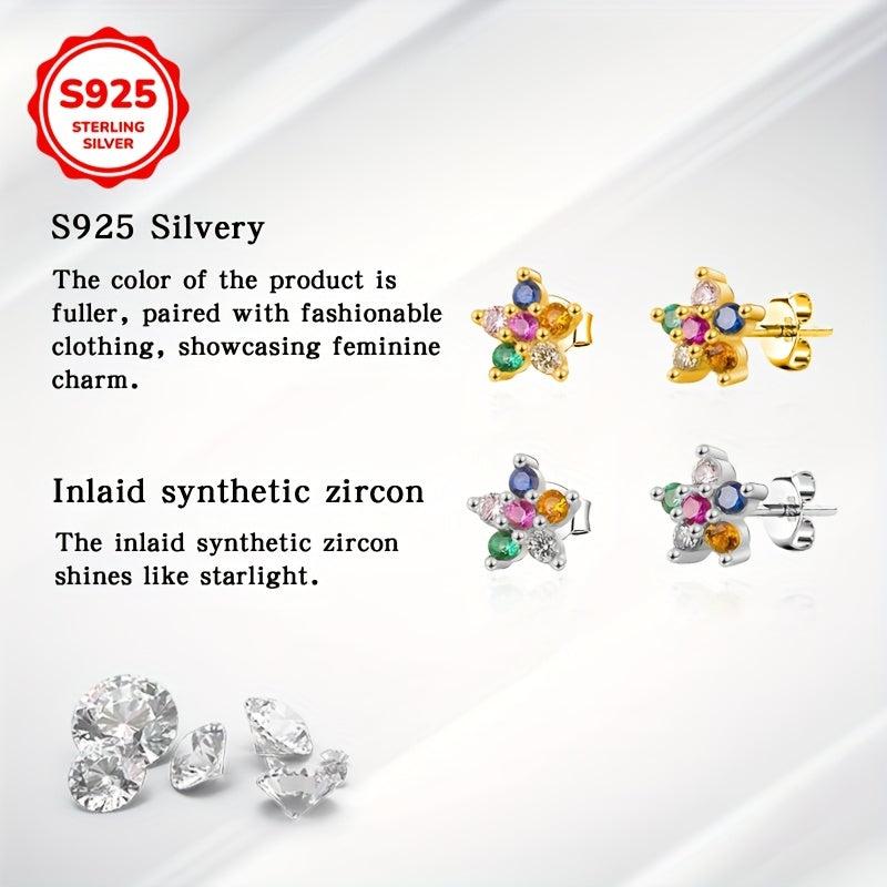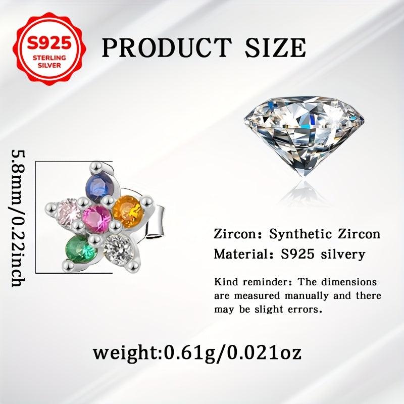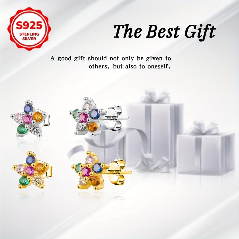 Add a pop of color to your outfit with these stunning zirconia flower inlay stud earrings. Made of 925 silver, these lightweight earrings are perfect for daily wear or as a thoughtful gift.