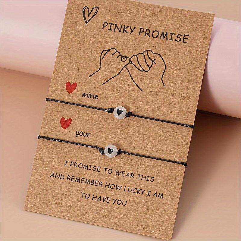 Enjoy everyday comfort with these glow in the dark heart bead friendship bracelets. Adjustable cord with pinky promise acrylic beads for a perfect casual attire accessory.