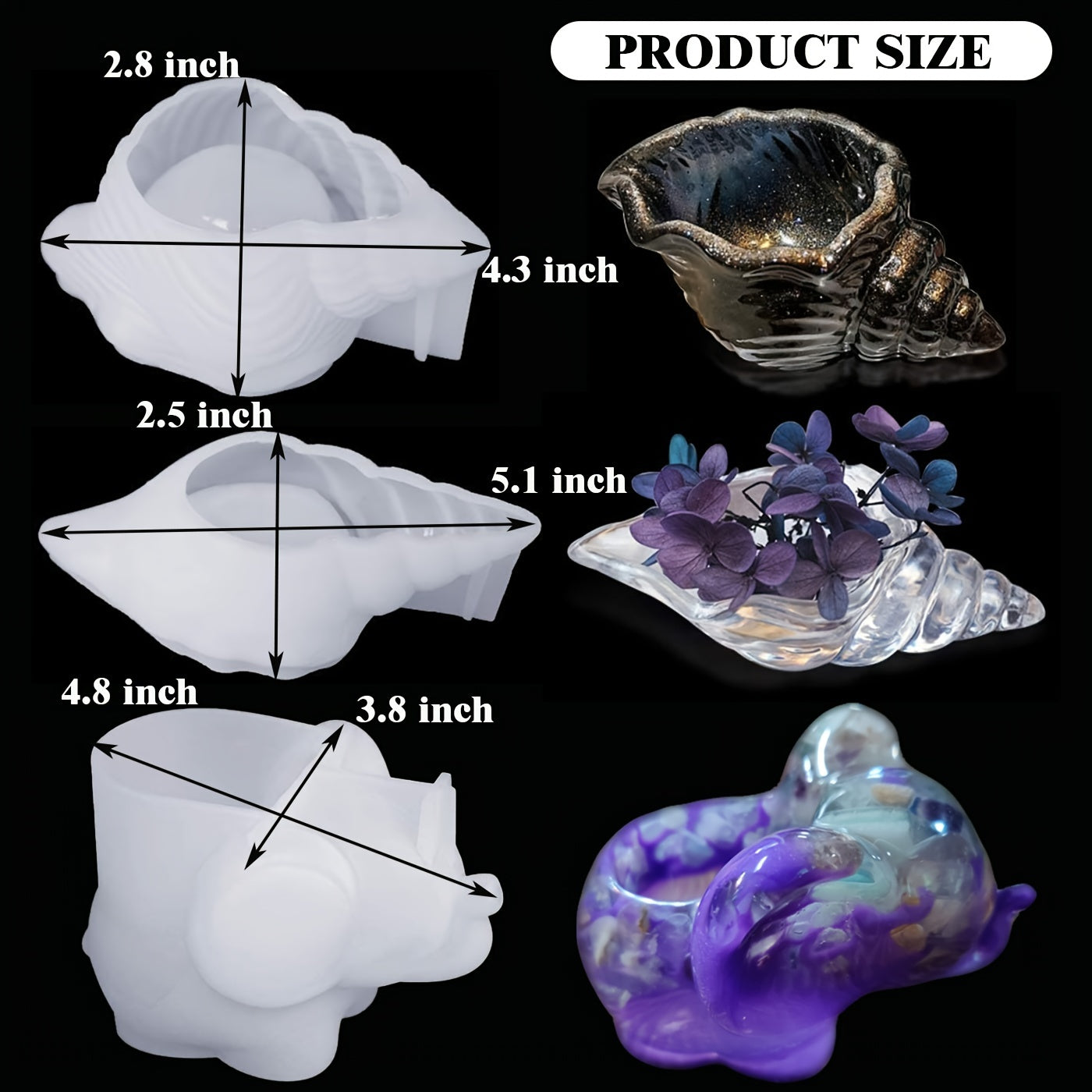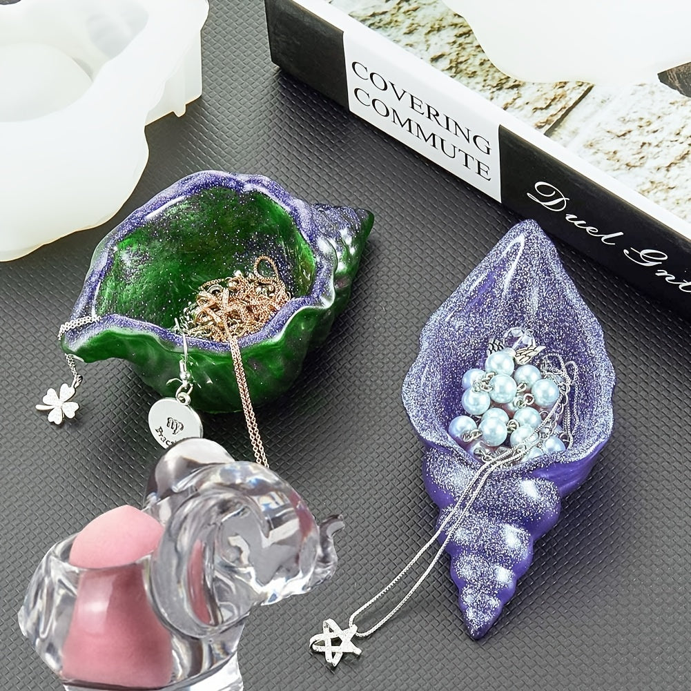 Create beautiful jewelry trays with this unique conch and elephant resin casting mold. Perfect for crafting elegant and functional trays.