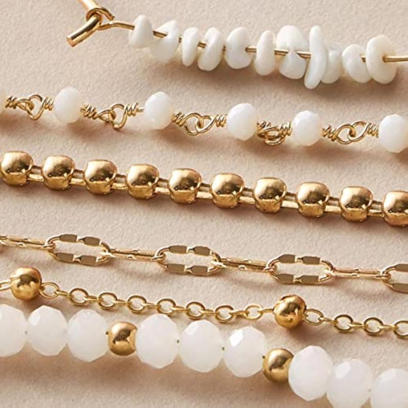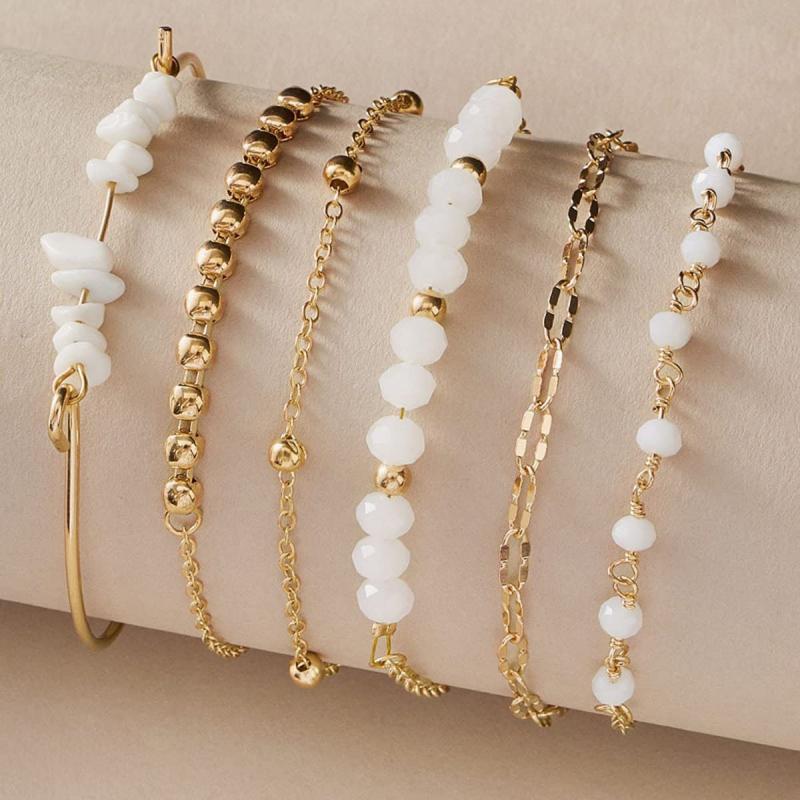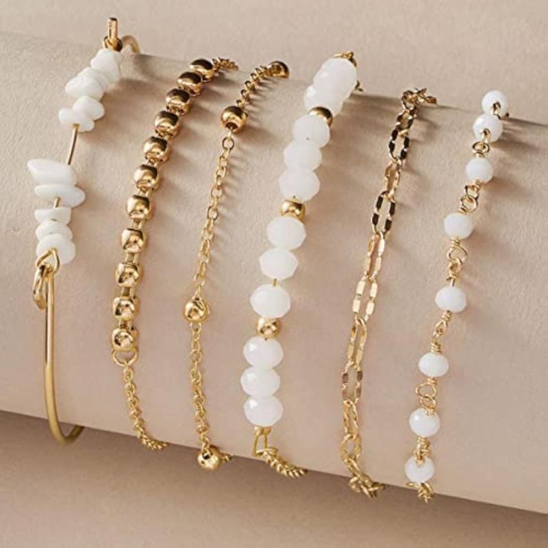 Elevate your style with this set of 6 stackable bracelets. Perfect for both casual and formal occasions.