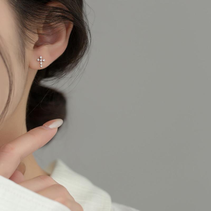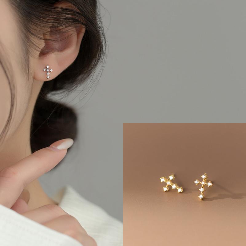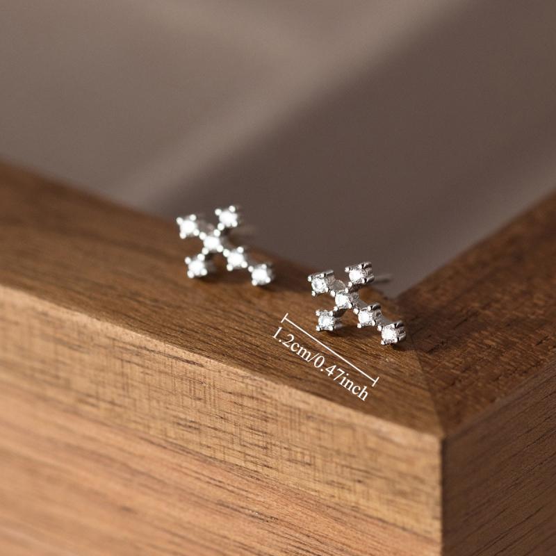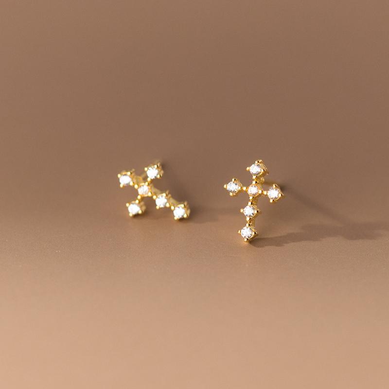 Elegant pair of stud earrings featuring copper cross design embellished with rhinestones. Perfect for daily wear and parties, ideal Valentine's Day gift. Versatile accessory for all seasons.